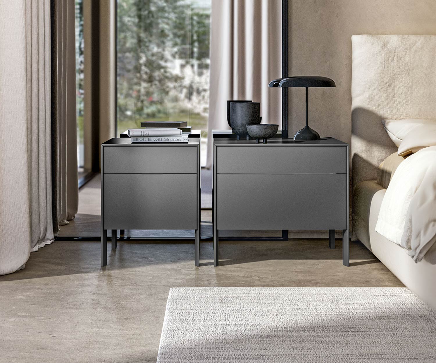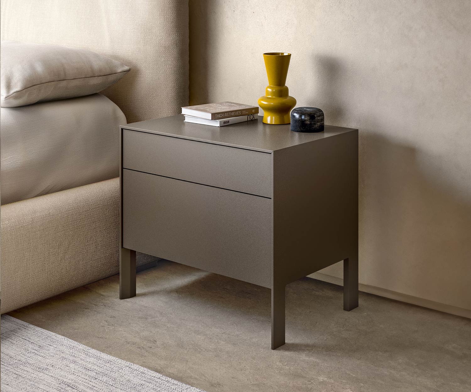 L'intérieur de la table de nuit Another Day de Capo d'Opera est en mélamine. Les côtés extérieurs et les façades de la table de nuit sont constitués d'un panneau MDF de haute qualité et sont laqués en couleur mate.