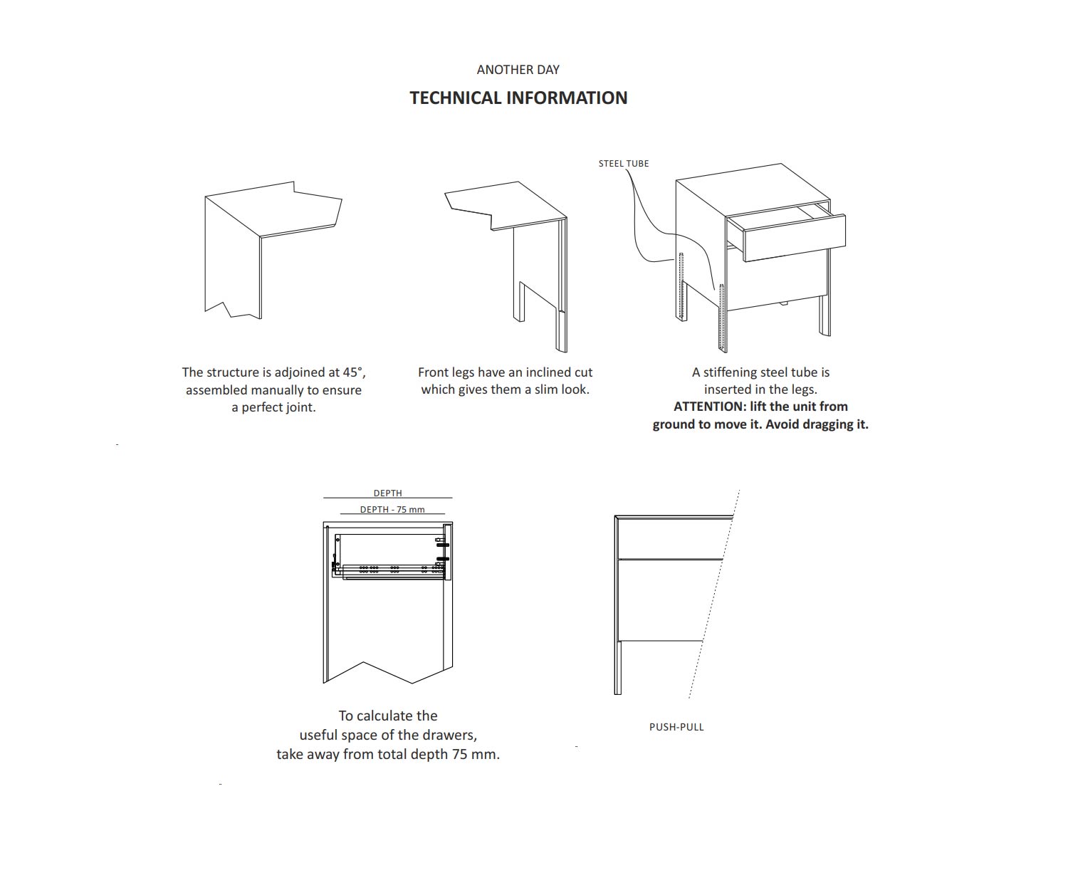 Le chevet Another Day se caractérise par une finition soignée, la structure étant assemblée à un angle de 45 degrés. Cela permet non seulement d'obtenir un aspect esthétiquement attrayant, mais aussi d'augmenter considérablement la stabilité du meuble. La précision de la finition garantit un assemblage parfait qui offre une durabilité et un toucher de qualité.