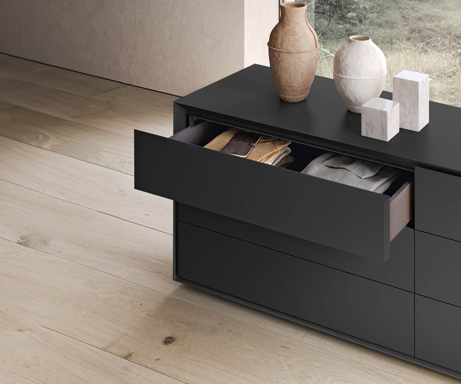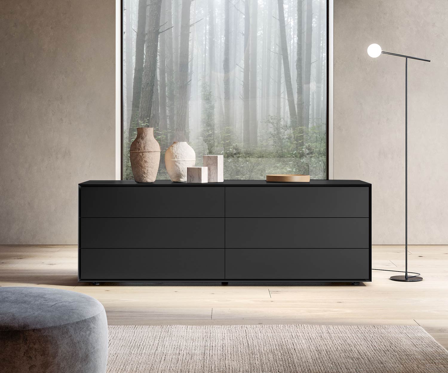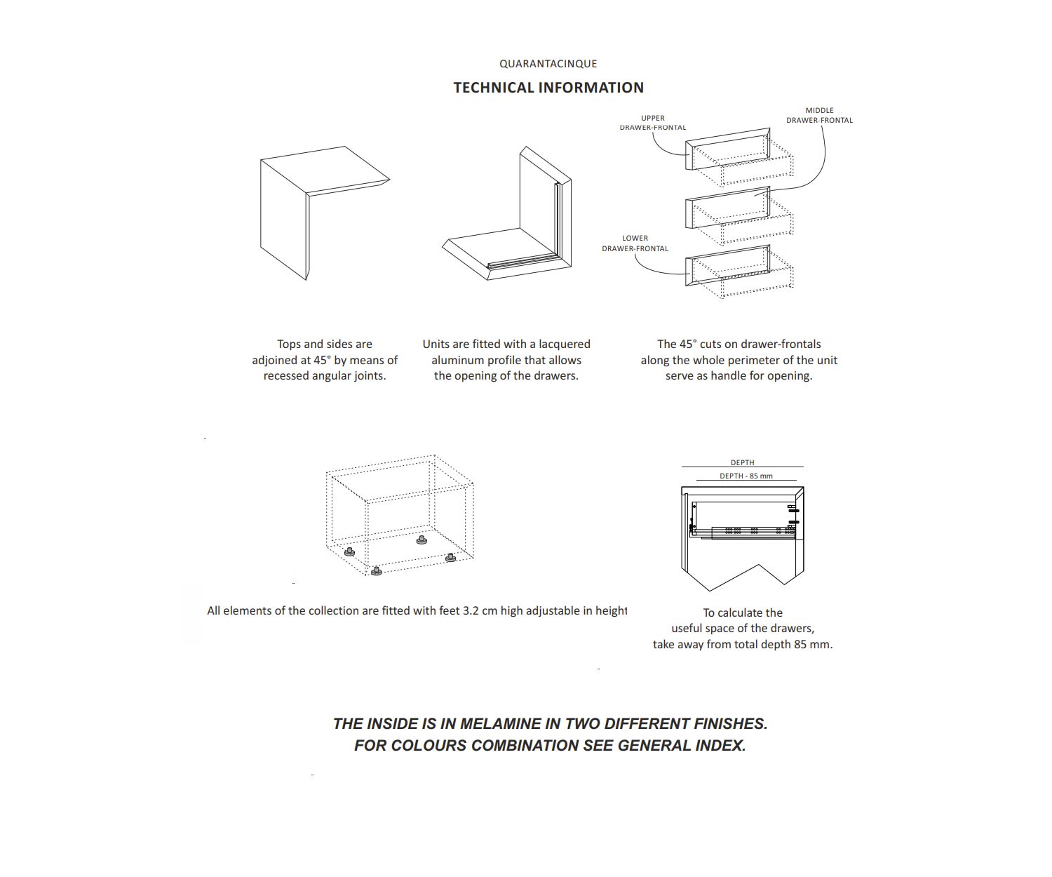 La collection Quarantacinque offre une multitude de tailles qui s'adaptent de manière flexible aux différents besoins - que ce soit en tant que commode, table de nuit ou commode haute. Idéal pour les chambres à coucher qui accordent de l'importance à la fois au style et à la fonctionnalité.