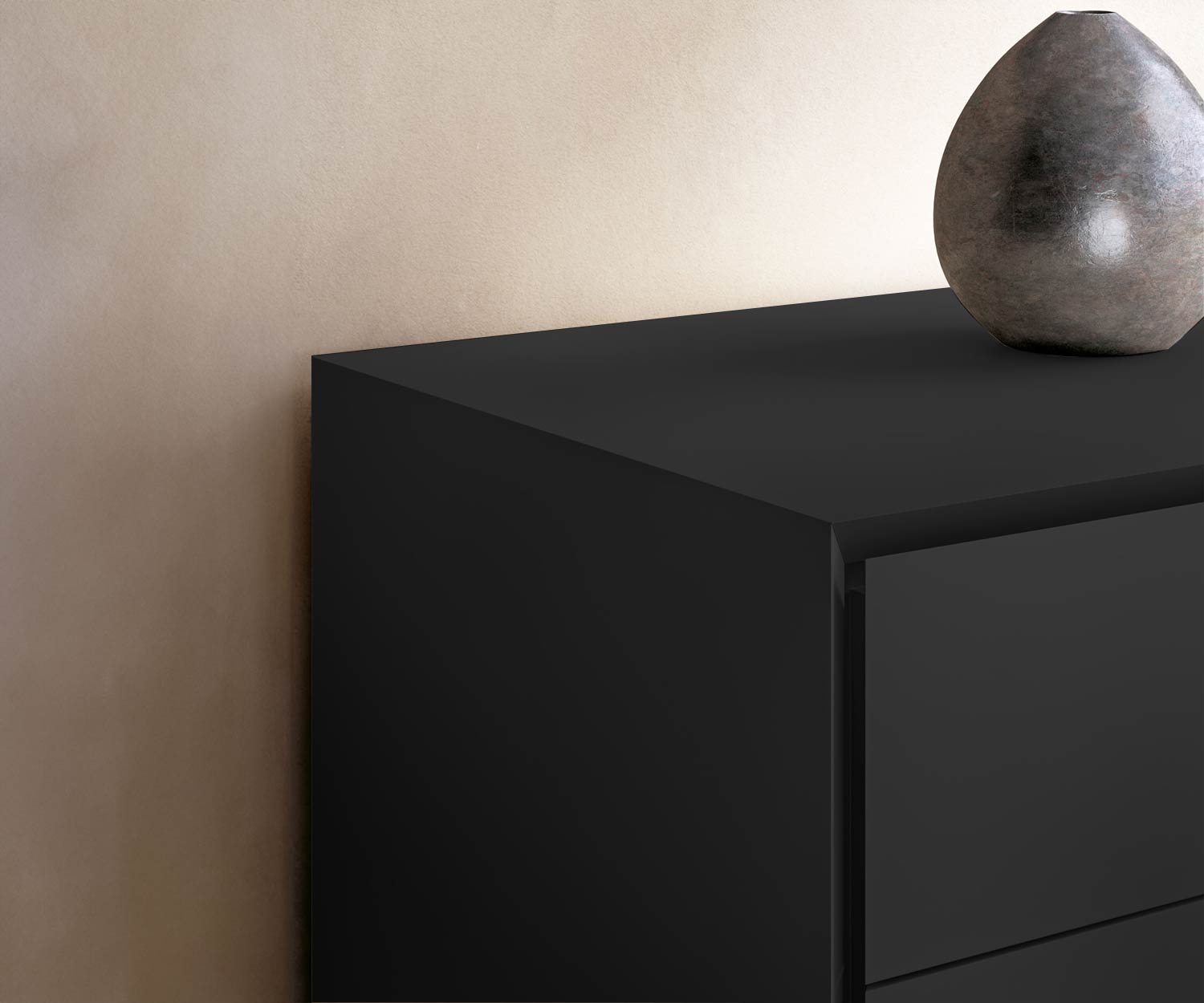 La commode design est disponible en 5 couleurs mates: GR3 beige (similaire à RAL1019), GN1 blanc (similaire à RAL9016), GN5 gris clair (similaire à RAL7040), GN7 gris foncé (similaire à RAL7043) et WN9 noir (similaire à RAL9017).