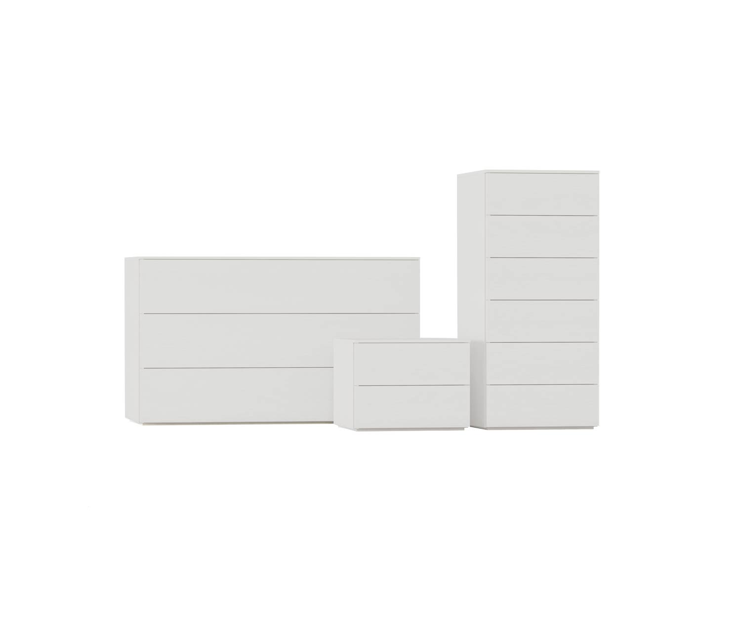 Grâce à des rails de haute qualité, les tiroirs coulissent en douceur et sans bruit, tandis que la poignée profilée pratique permet de les ouvrir sans effort. Disponible en trois teintes mates - blanc Bianco, gris clair Nuvola et beige clair Canapa - la commode Atena peut être configurée selon vos souhaits et s'adapte parfaitement à tout intérieur moderne.