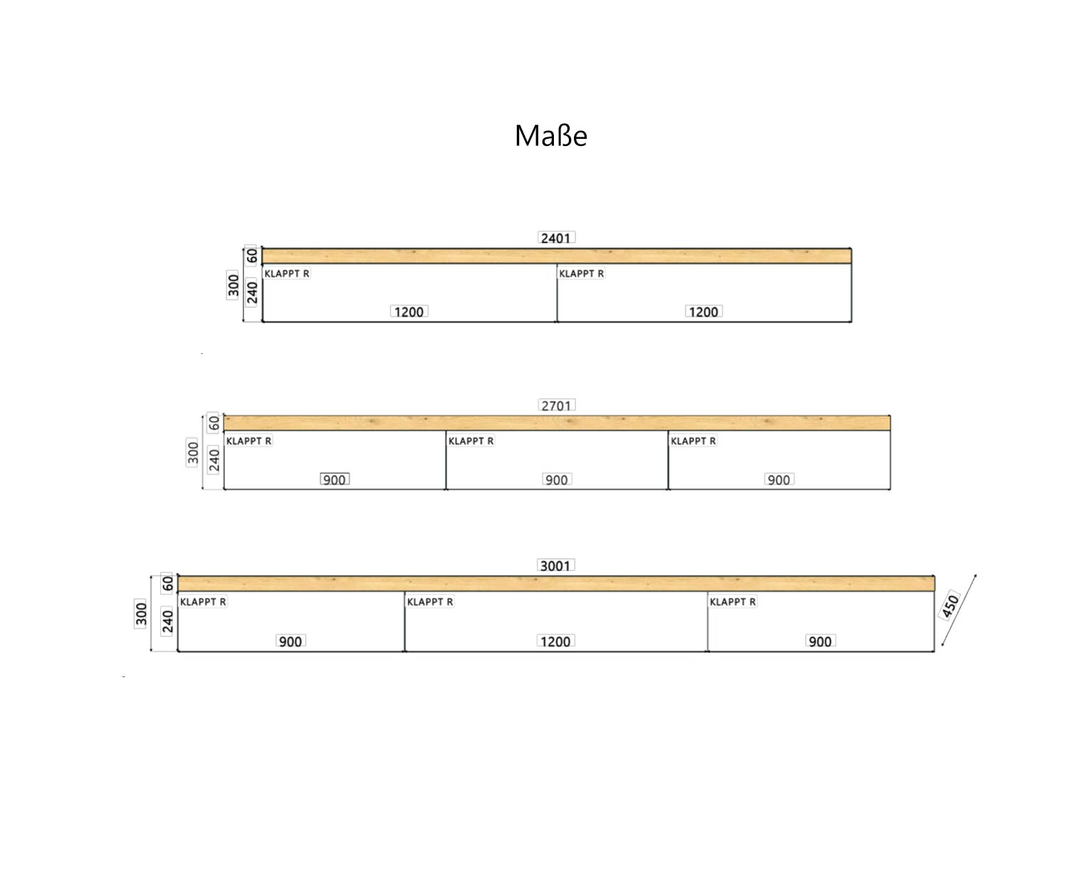 Dimensions : L 300 cm / H 30 cm / P 45 cmPortes abattantes