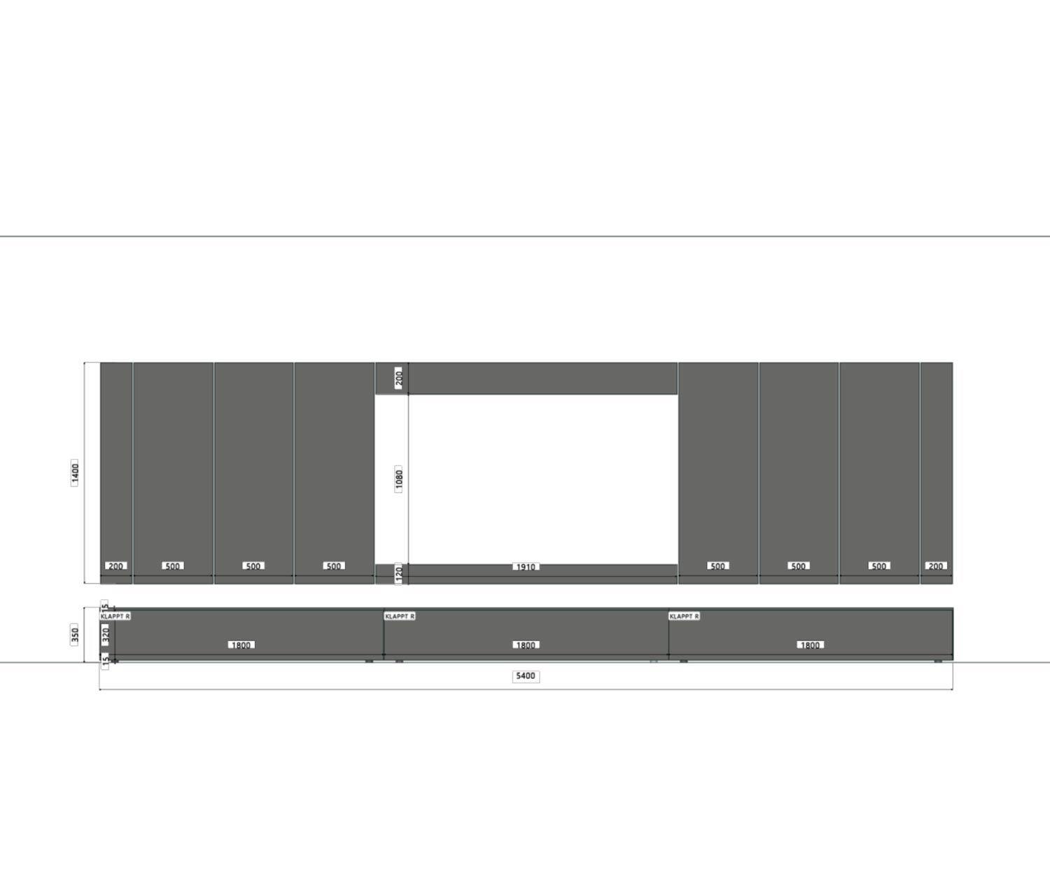 - Panneau TV : Panneau large (300 cm), parfait pour les téléviseurs de plus de 65 pouces.