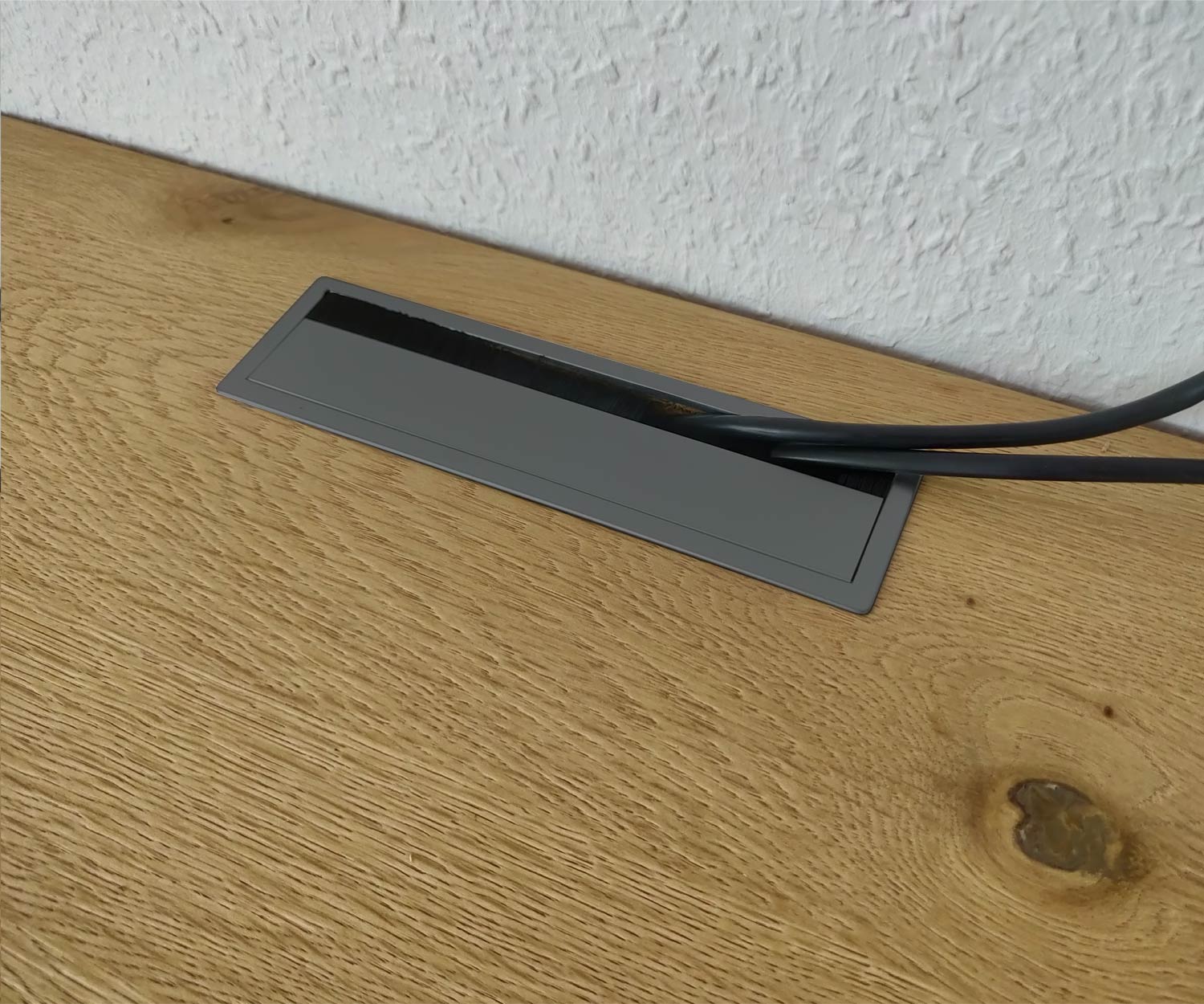 Le plateau de finition est toujours d'une seule pièce et a la même largeur que le lowboard. Selon la largeur, ce lowboard peut être commandé avec un équipement individuel. Vous souhaitez placer un lecteur DVD ou un récepteur AV dans votre nouveau lowboard TV ou vous avez besoin d'un passage de câbles ? Pas de problème ! Un conseiller personnel vous contactera après l'achat et discutera avec vous de la position optimale du chemin de câbles. Tous les chemins de câbles sont inclus dans le prix. Prémonté de manière professionnelle et livré dans les délais. Vous avez le choix entre des étagères, des chemins de câbles ou des tiroirs. Le meilleur : tous les extras sont déjà inclus dans le prix.