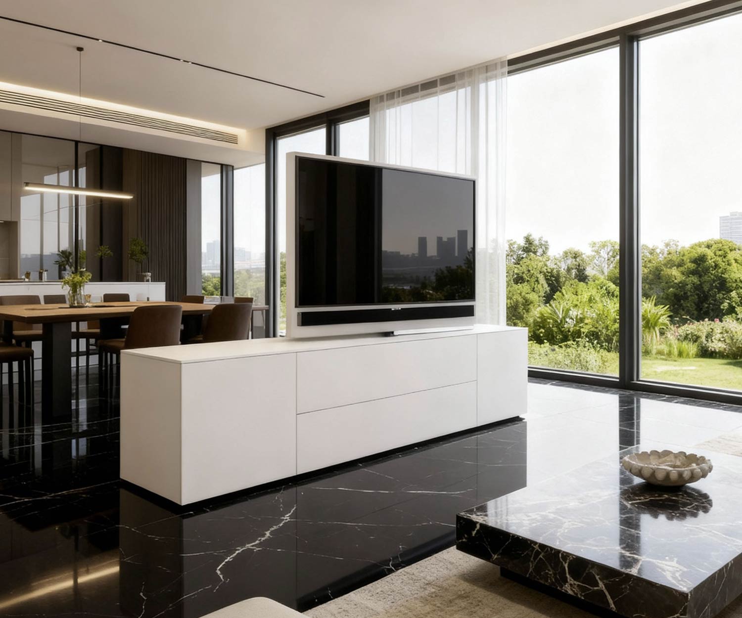 Das drehbare TV-Paneel hat unser Wohnzimmer in einen flexiblen Raum verwandelt, der jetzt viel lebendiger wirkt.