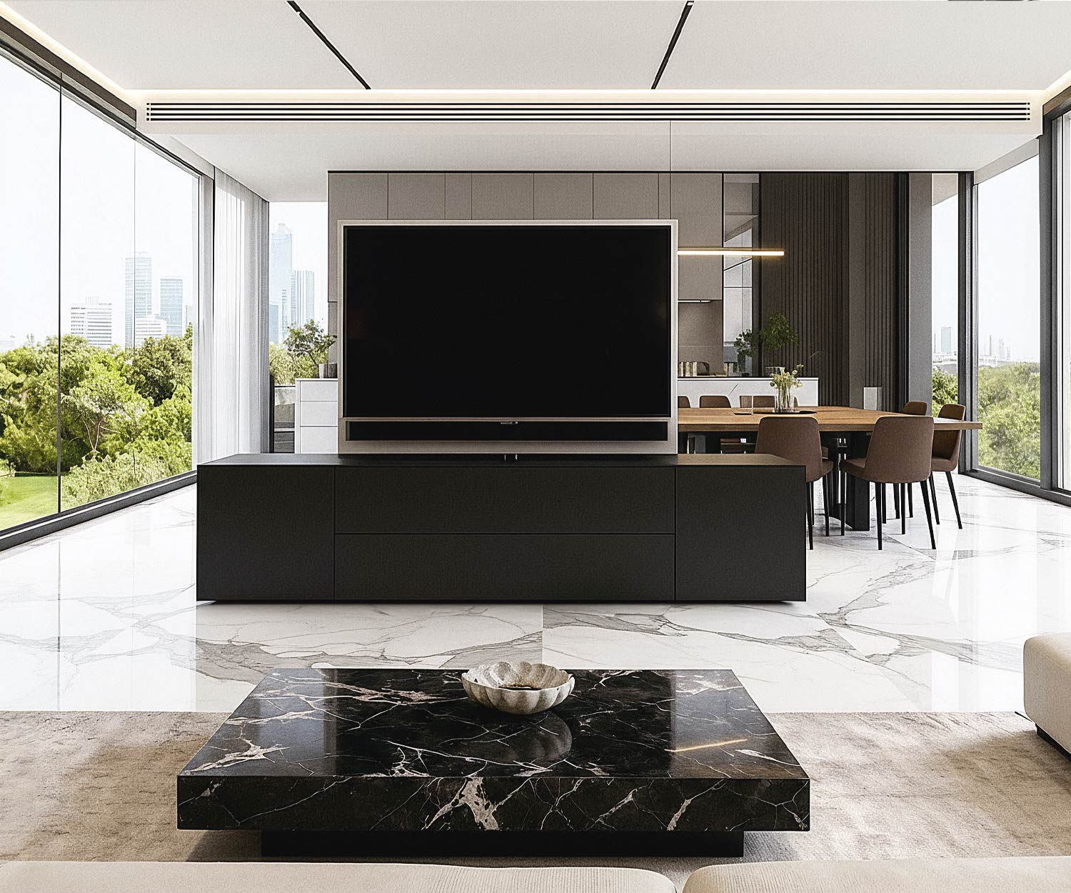 Erhältlich ist das Sideboard in Weiß Matt (RAL9016) oder Schwarz Matt (RAL9011), während TV-Paneel stets in Weiß Matt gefertigt werden. Auf Wunsch sind auch individuelle Sonderfarben möglich. Ein echtes Designerstück aus Italien, das Funktionalität, Qualität und zeitlose Ästhetik vereint.