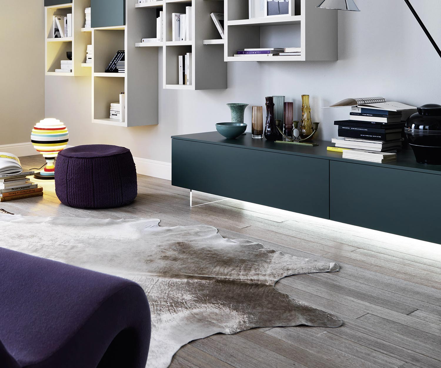 Ce socle peut être combiné avec tous les lowboards en bois, box et Vesa posés au sol de Livitalia. La profondeur du lowboard doit être de 45 ou 54 cm.