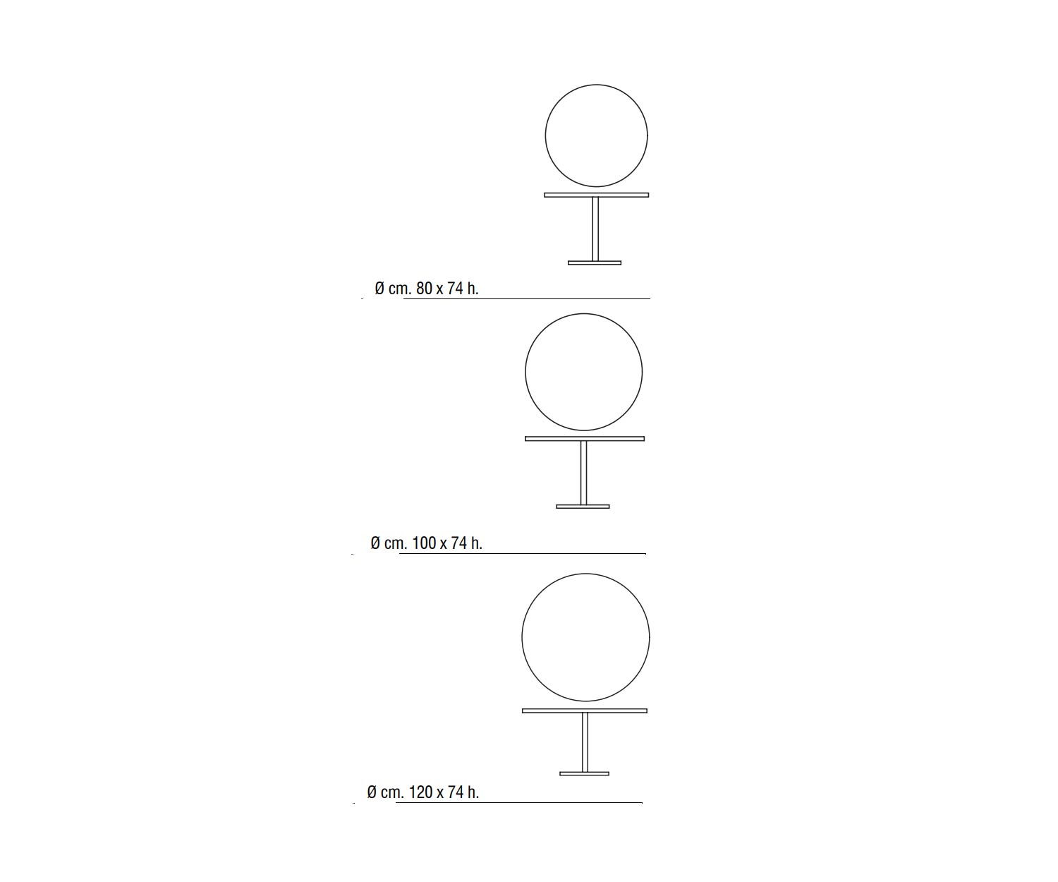 Le pied du piètement a un diamètre de 60 ou 80 cm.