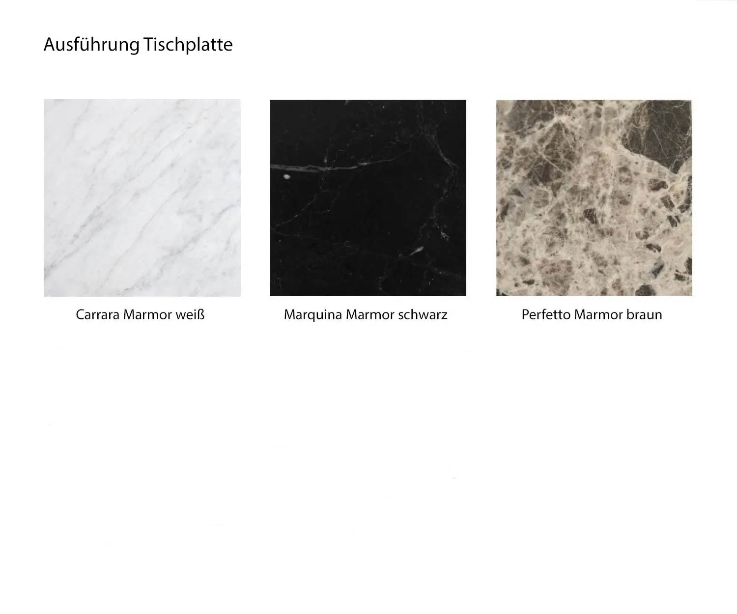 Le plateau de cette table de salle à manger design Break de Marelli est en marbre italien ou espagnol ou en verre. On peut choisir entre : Marbre Carrara Blanc, Marbre Marquinia Noir ou Marbre Perfetto Brun. Les pieds du piètement sont en métal.