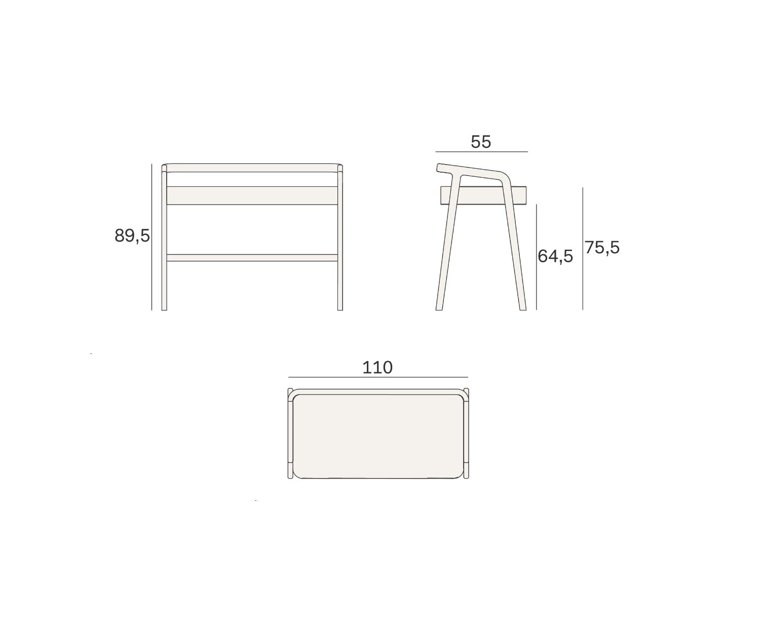 Dimensions extérieures : L 110 cm / H 89,5 cm / P 55 cm