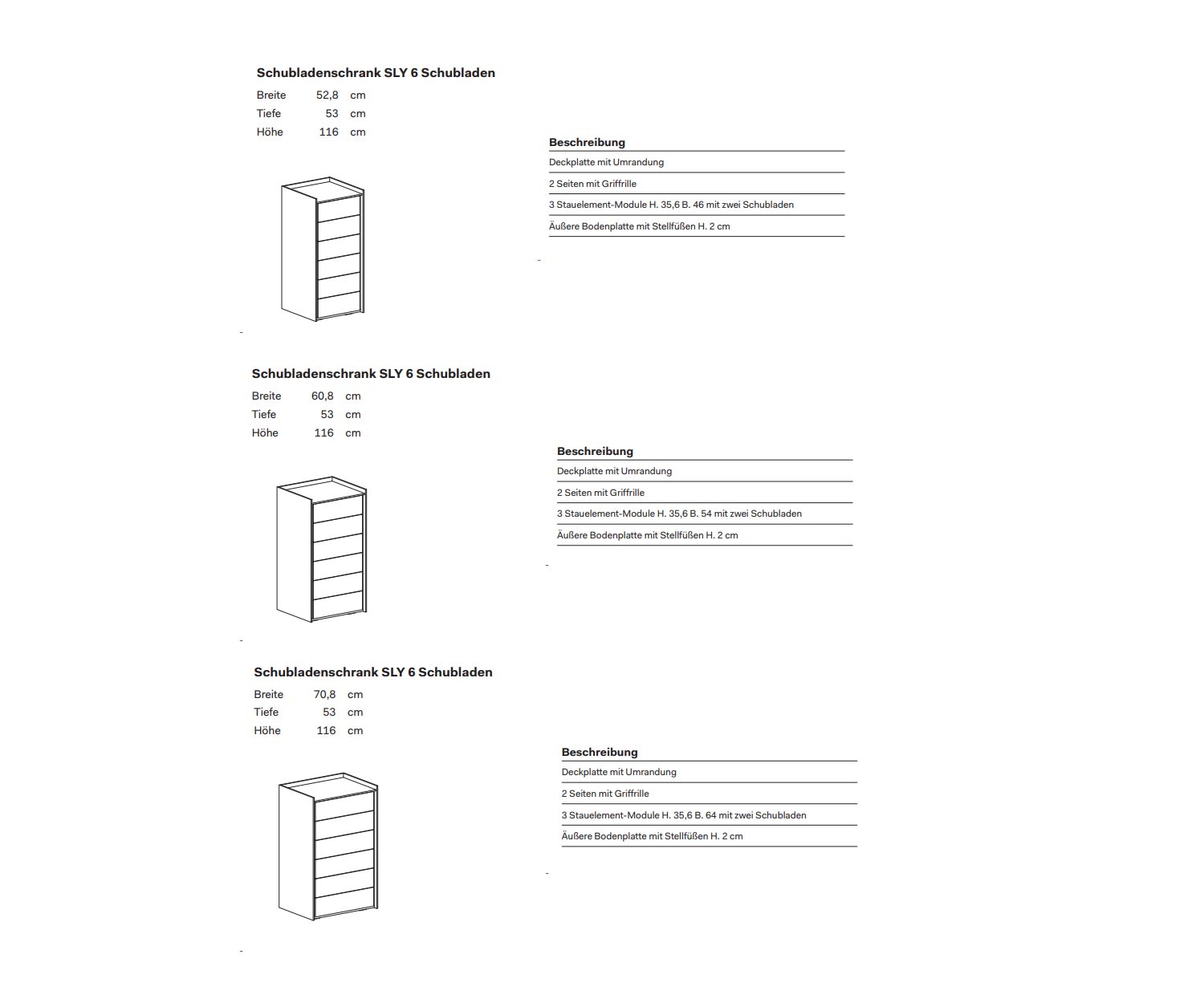 L 52,8 cm / H 116 cm / P 53 cm (6 tiroirs)