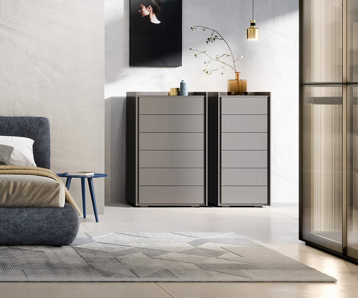 La table de nuit Sly et la commode Sly sont également assorties à la série Sly.