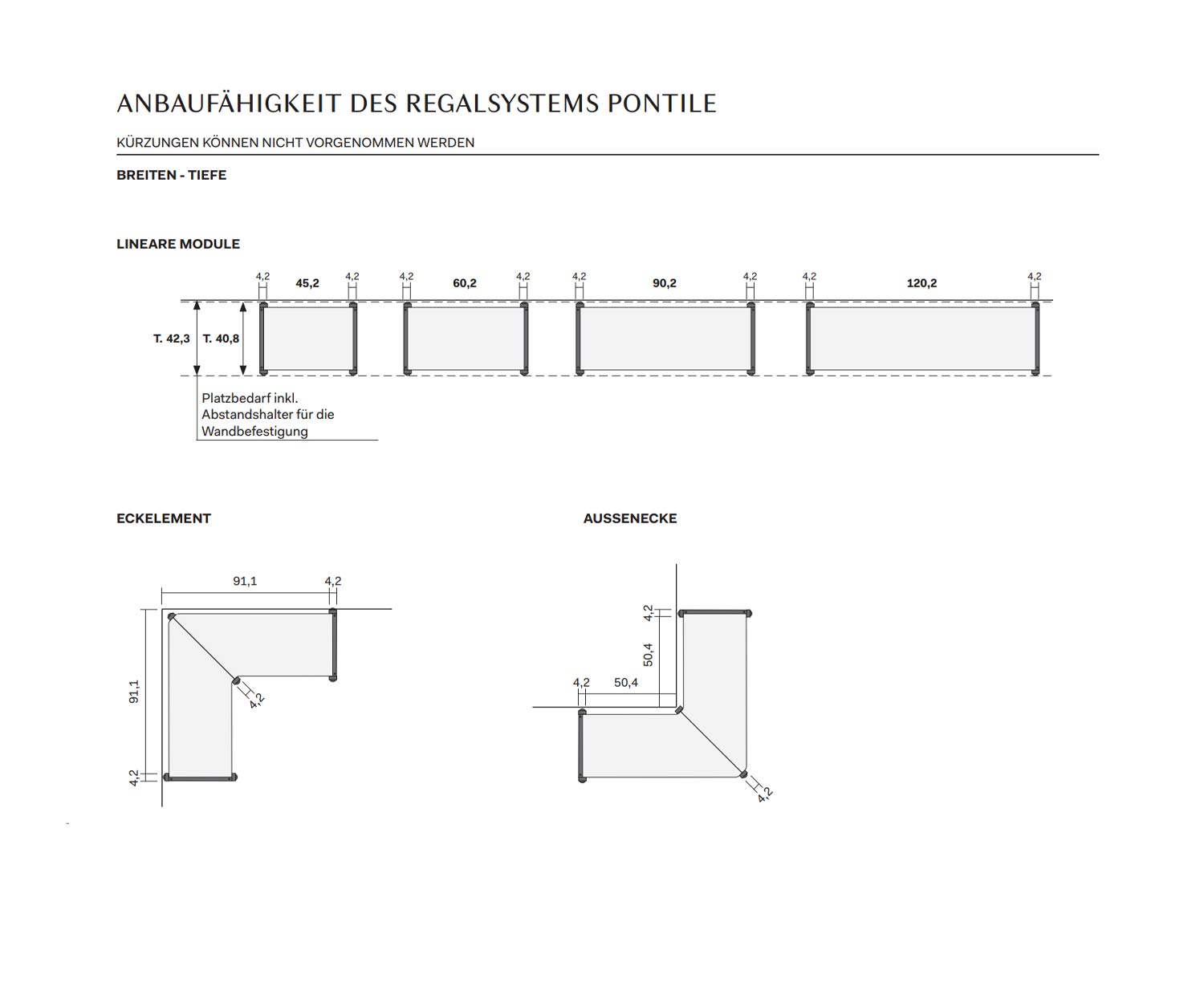 Largeurs des modules : 45,2 - 60,2 - 90,2 - 120,2 cm