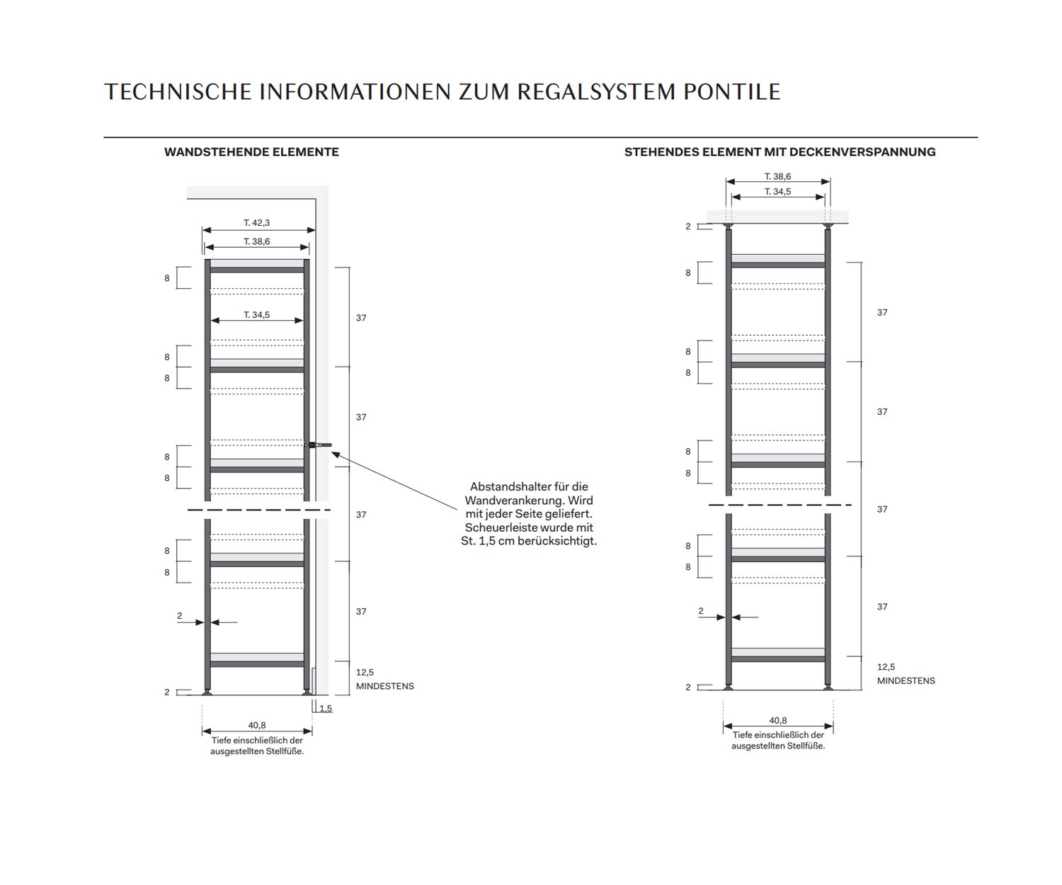 L'étagère peut être modifiée en largeur et en hauteur (voir le croquis pour les dimensions possibles). Des boîtes fermées et ouvertes peuvent être intégrées sur demande.