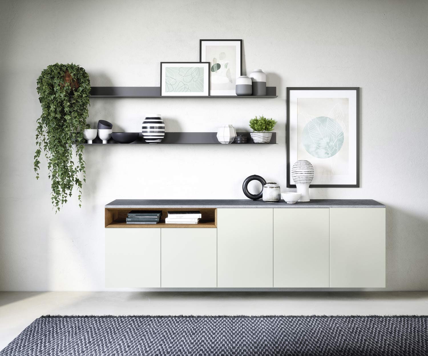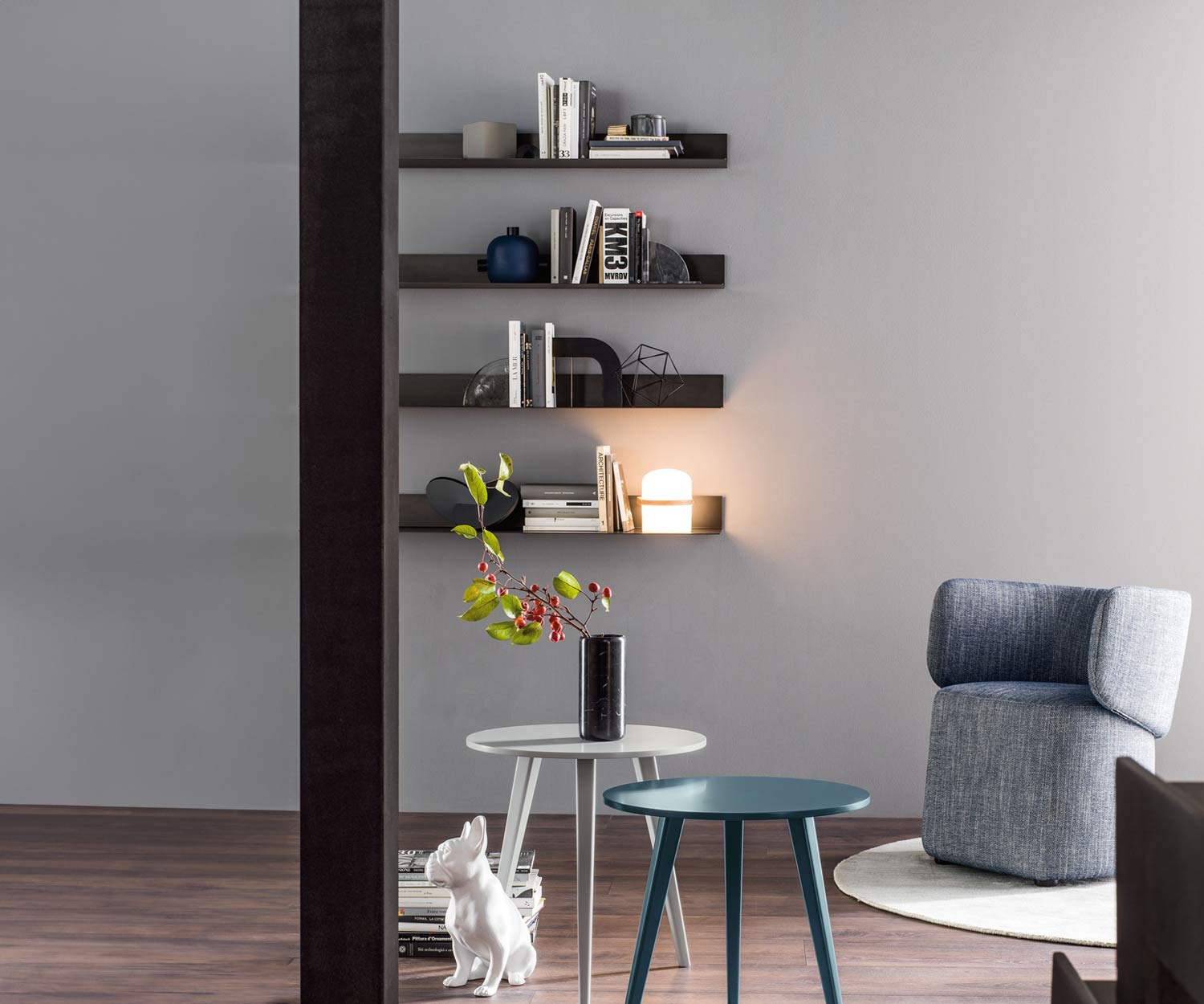 La surface de l'étagère murale Ellie est disponible en 5 couleurs mates différentes. Sélectionnez simplement la couleur souhaitée dans le menu de configuration.