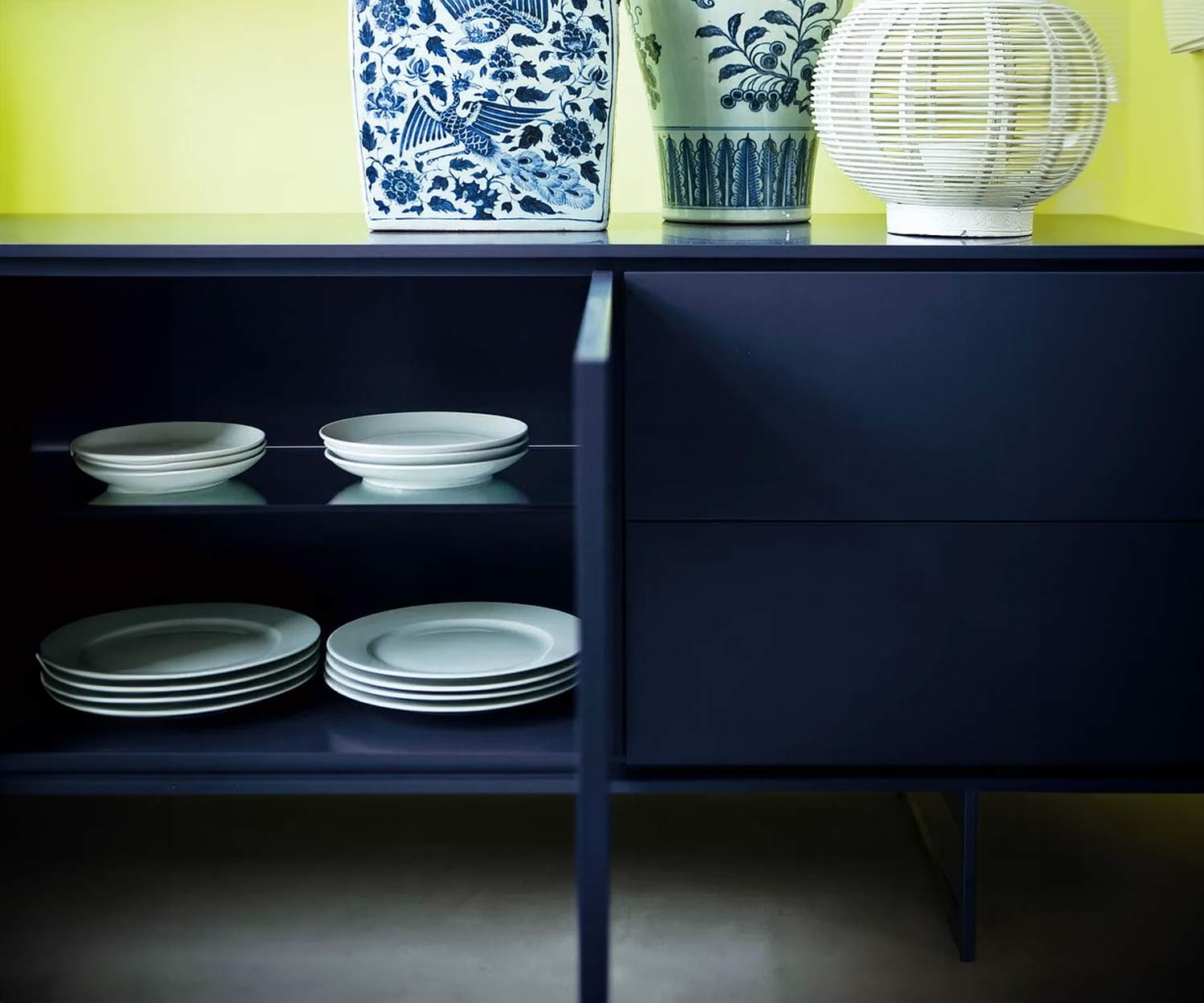 Le sideboard est disponible en 6 couleurs mates. Pour un contraste particulier, la façade et le corps de l'ombre peuvent être combinés dans différentes finitions de couleur.