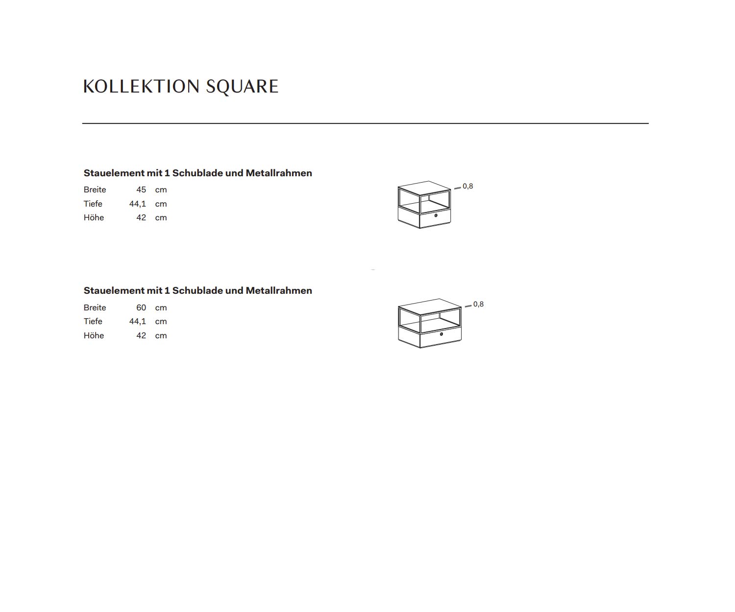 L'élégant cadre métallique qui réunit les tiroirs et les compartiments ouverts en un ensemble harmonieux est caractéristique de Square. Il en résulte un jeu captivant de structure, de légèreté et de fonctionnalité - parfait pour les salons et les chambres à coucher modernes.
