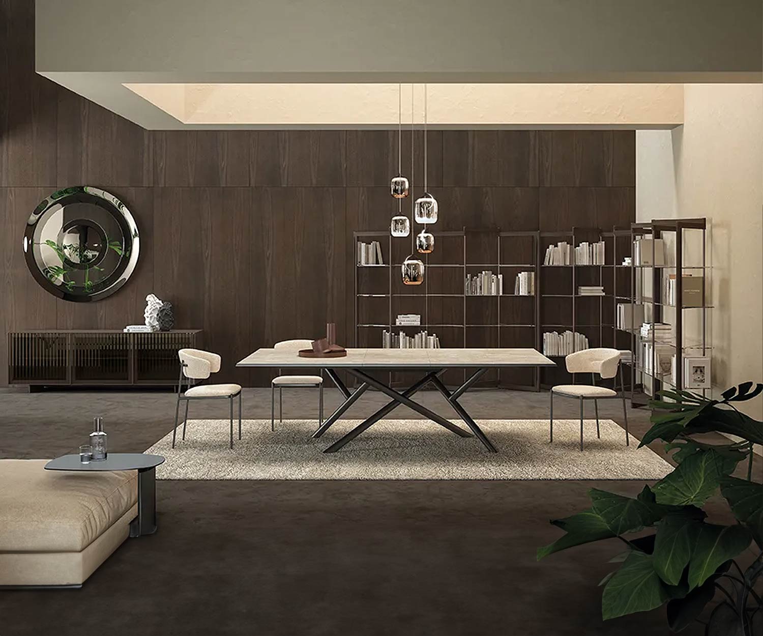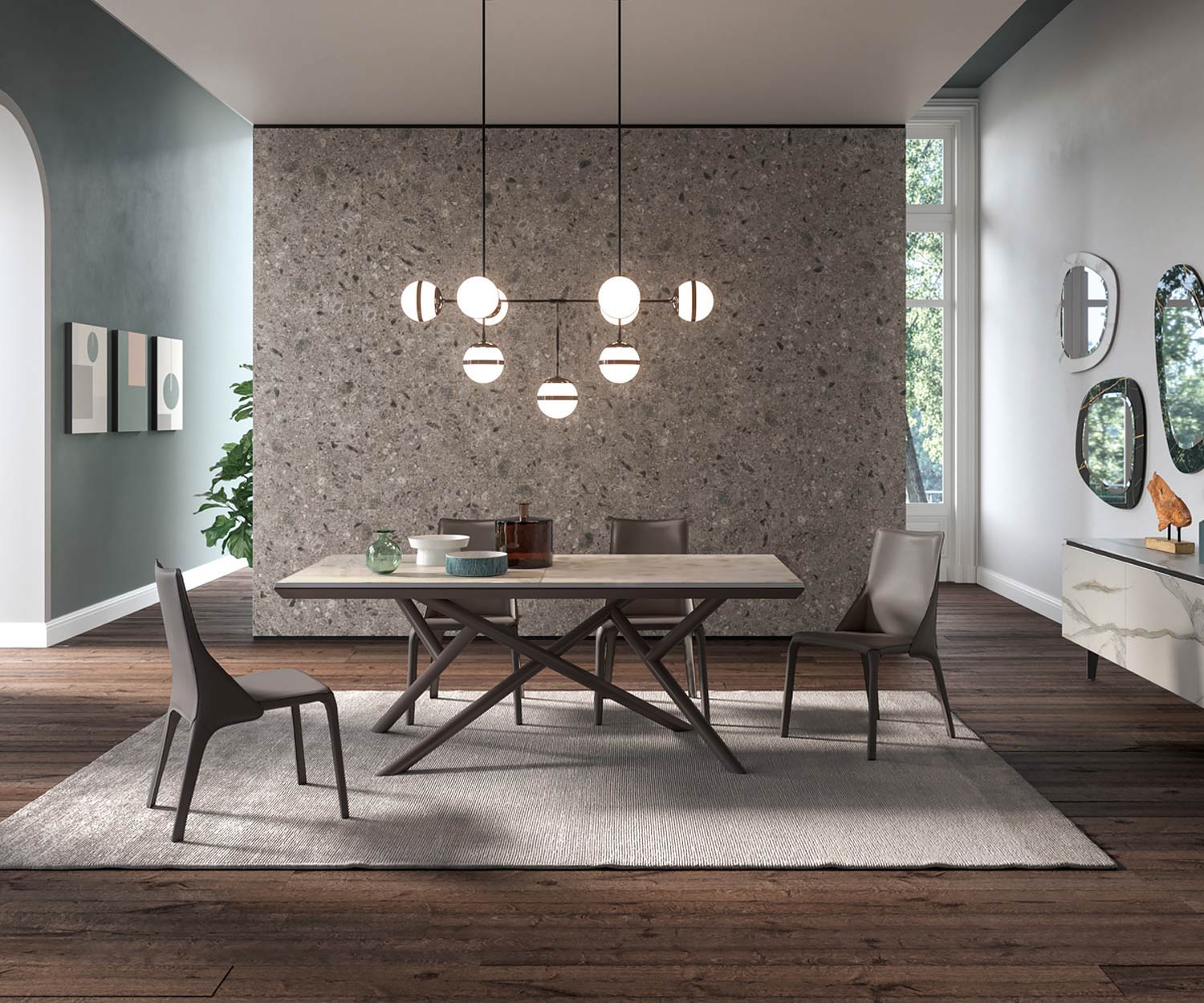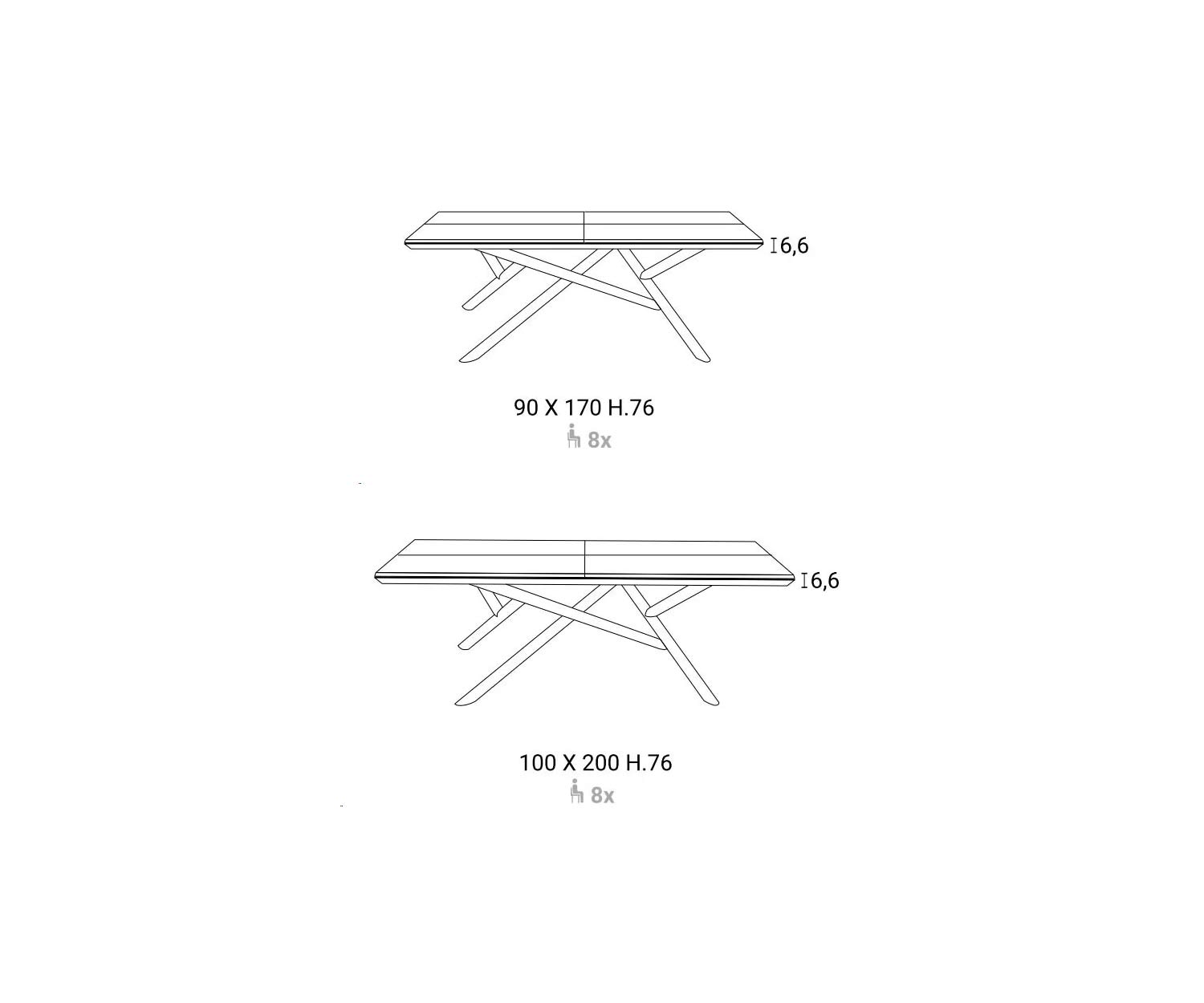 La table de salle à manger design Random T251 de Ozzio est disponible en 2 largeurs :
