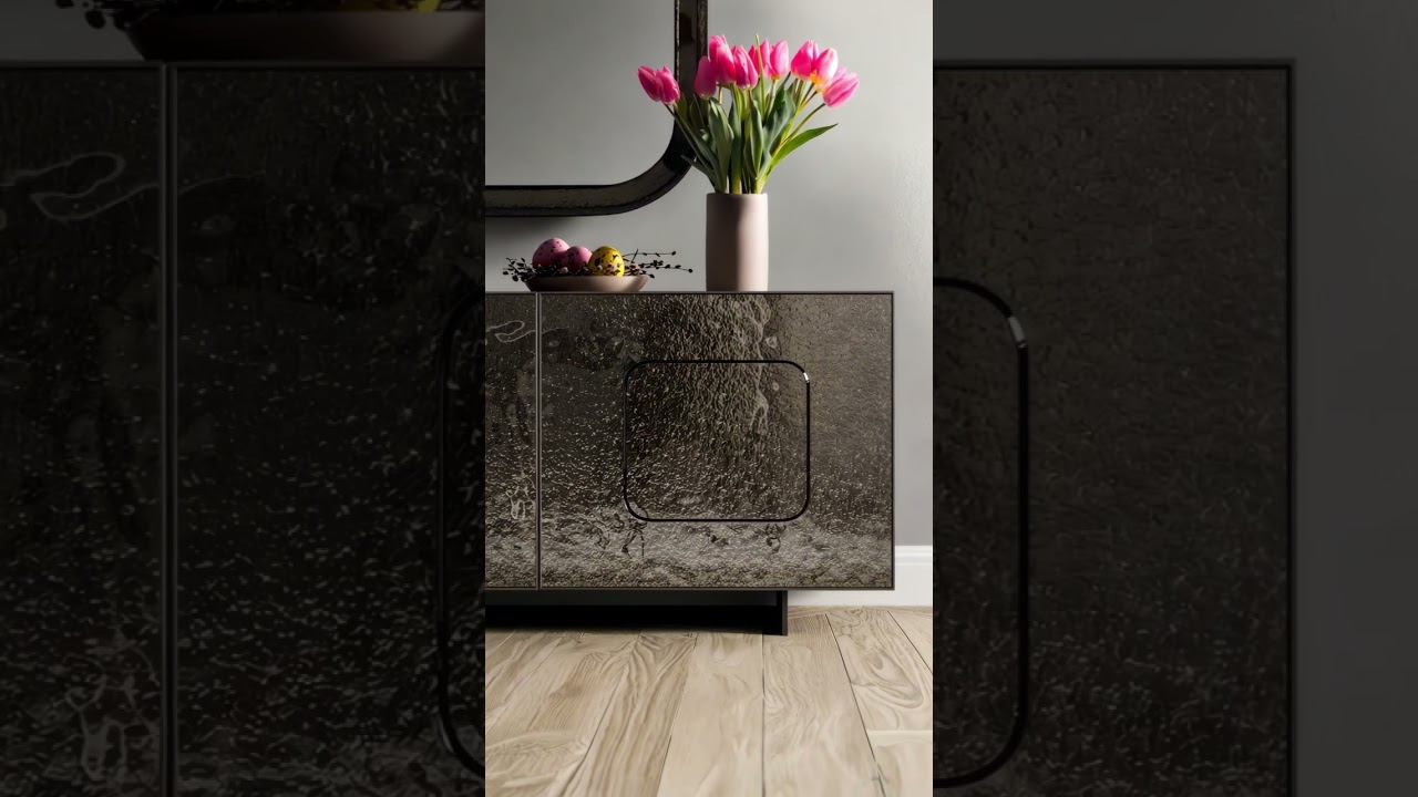 Le sideboard design en verre Giulia Ozzio est disponible dans les coloris suivants pour la façade Les couleurs du verre gris ou du verre bronze sont disponibles. Le reste du corps est laqué en Ardesia mat (pour le choix du verre gris) ou en Bronze mat. (pour le choix Verre Bronze).