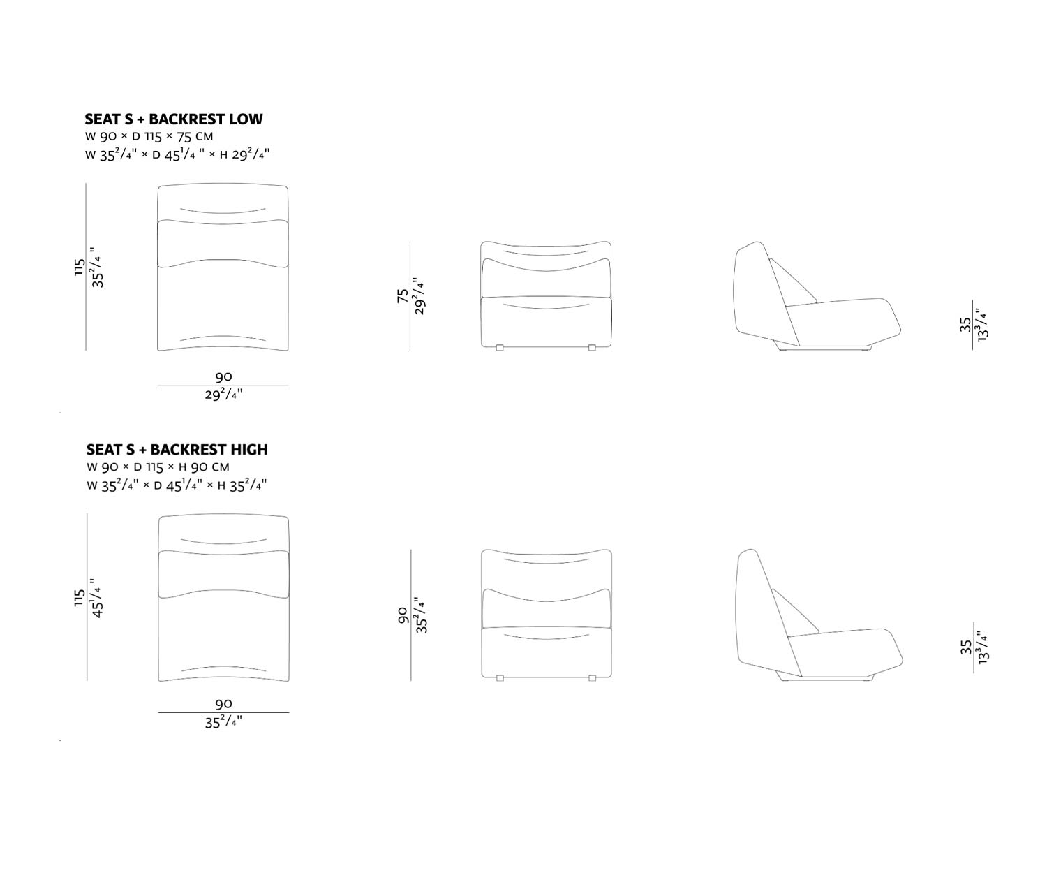 B 90 cm / H 75 cm / T 115 cm als Sessel mit Rückenlehne niedrig
