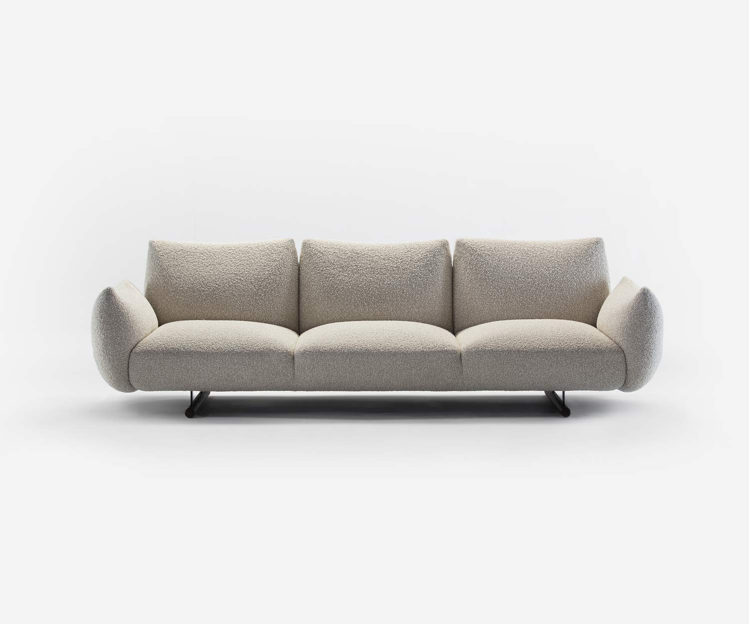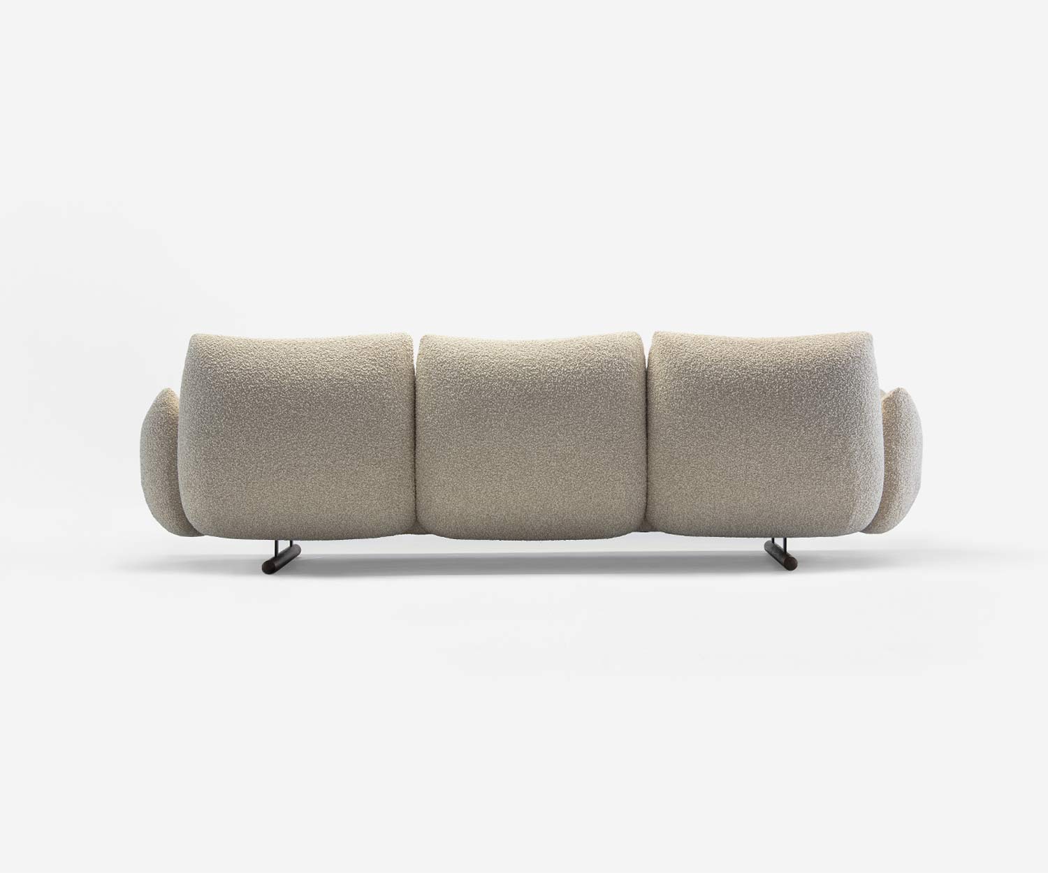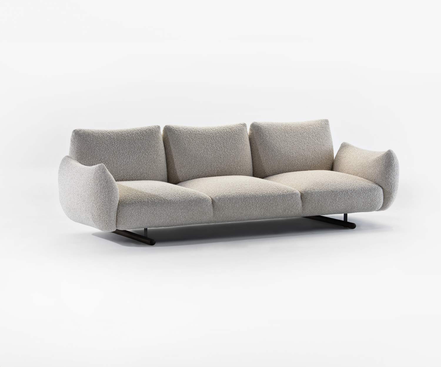 Le fauteuil Buffa et le canapé Bouclé vont au-delà des meubles rembourrés traditionnels et offrent une présence non seulement fonctionnelle, mais aussi artistique dans la pièce. Les lignes douces et arrondies et la forme ludique et aplatie rappellent la légèreté joyeuse de l'opéra-comique italien et apportent une touche d'humour à l'allure luxueuse du canapé.