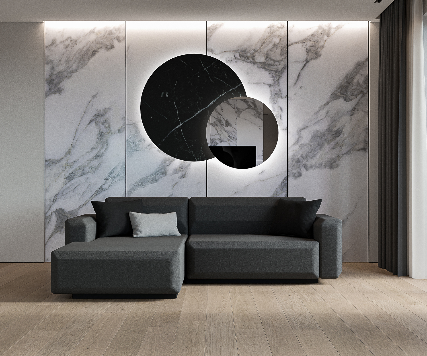 Canapé-lit moderne Fade de Prostoria. Le design futuriste convainc par ses lignes droites et sa base fonctionnelle. La surface d'assise peut être étendue si nécessaire et se transformer en une grande surface de repos. Le rembourrage confortable n'invite pas seulement à s'asseoir, mais peut également être utilisé comme canapé-lit.