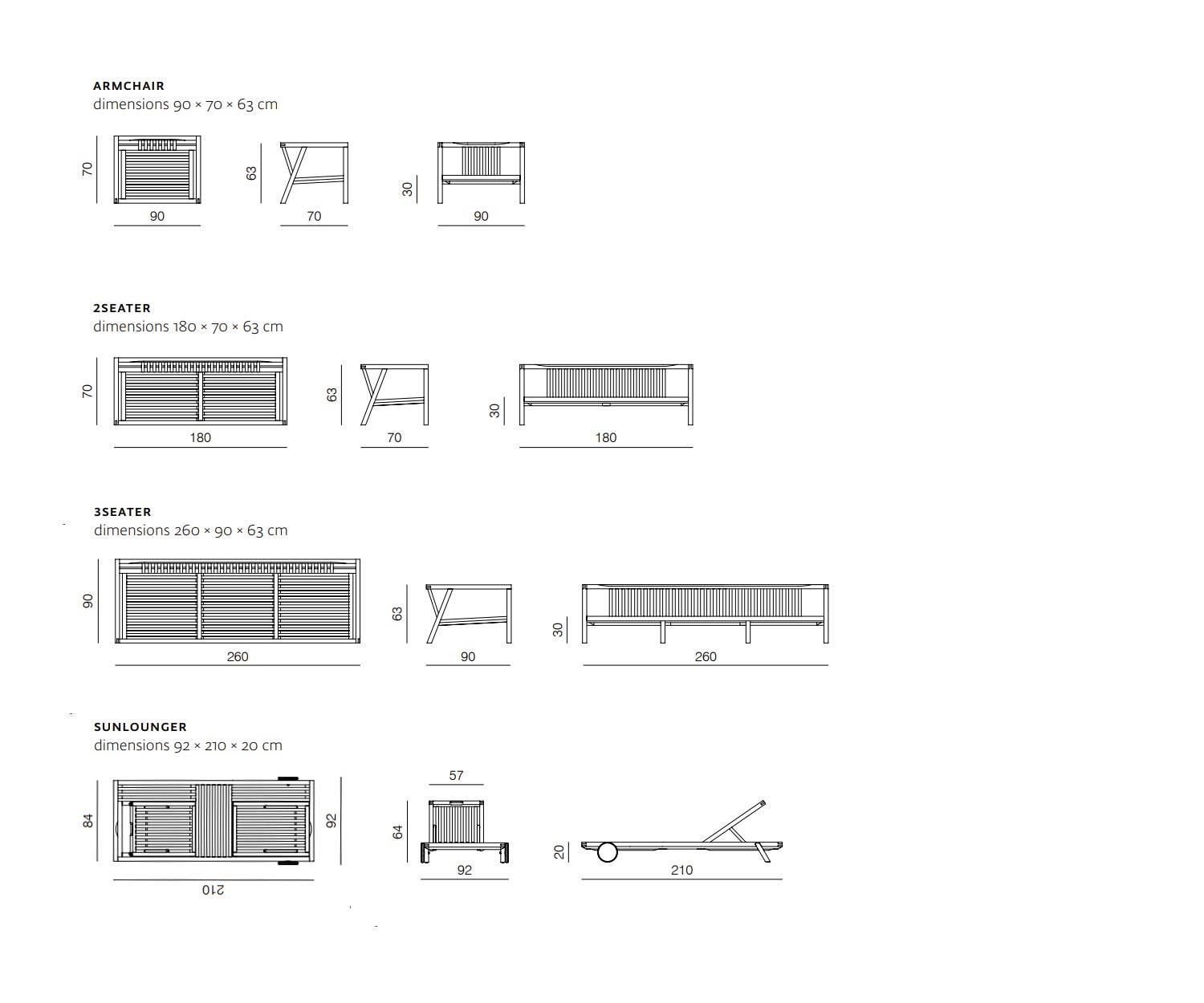 L 260 cm / H 63 cm / P 90 cm (3 places)