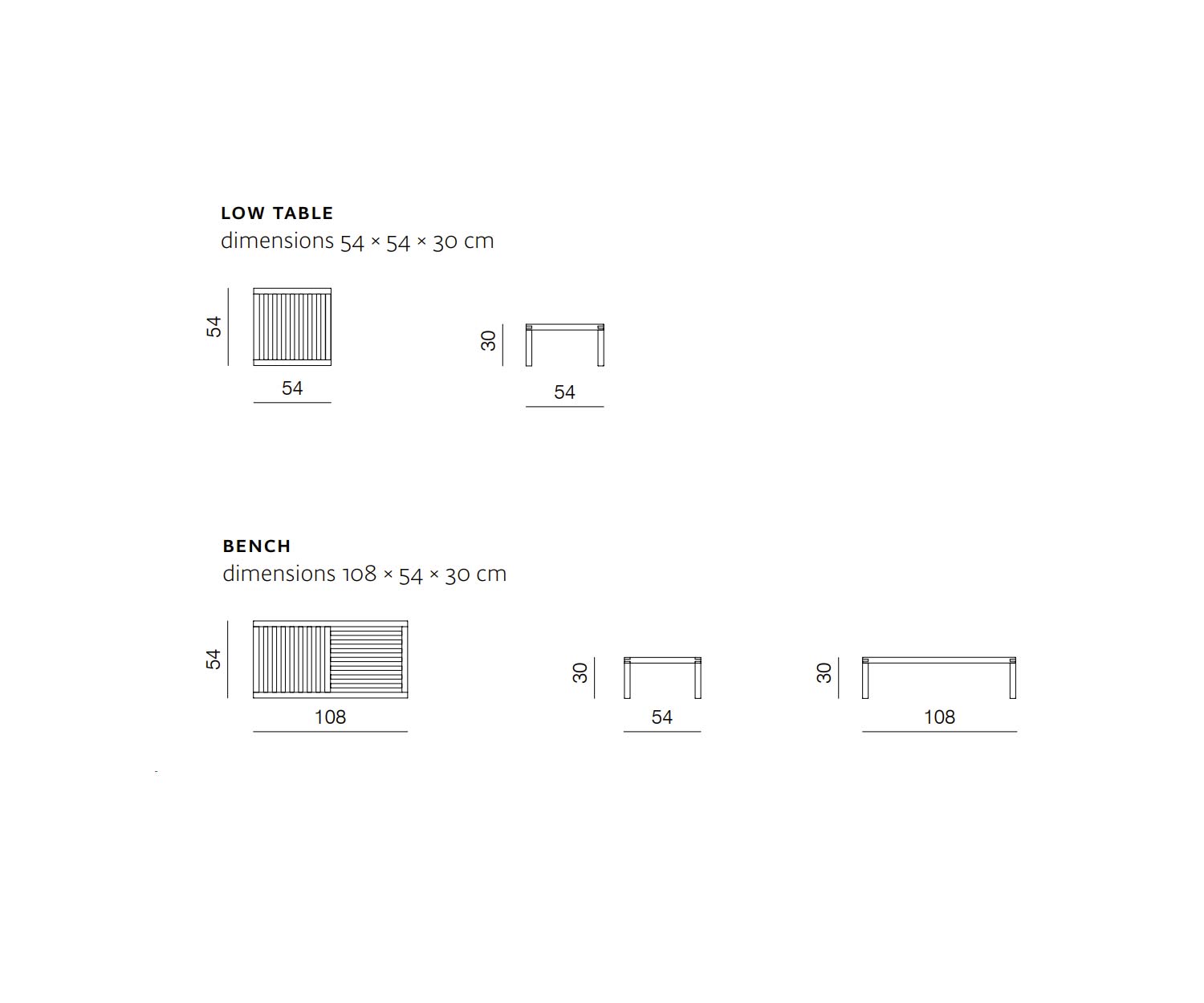 L 108 cm / H 30 cm / P 54 cm (banc)