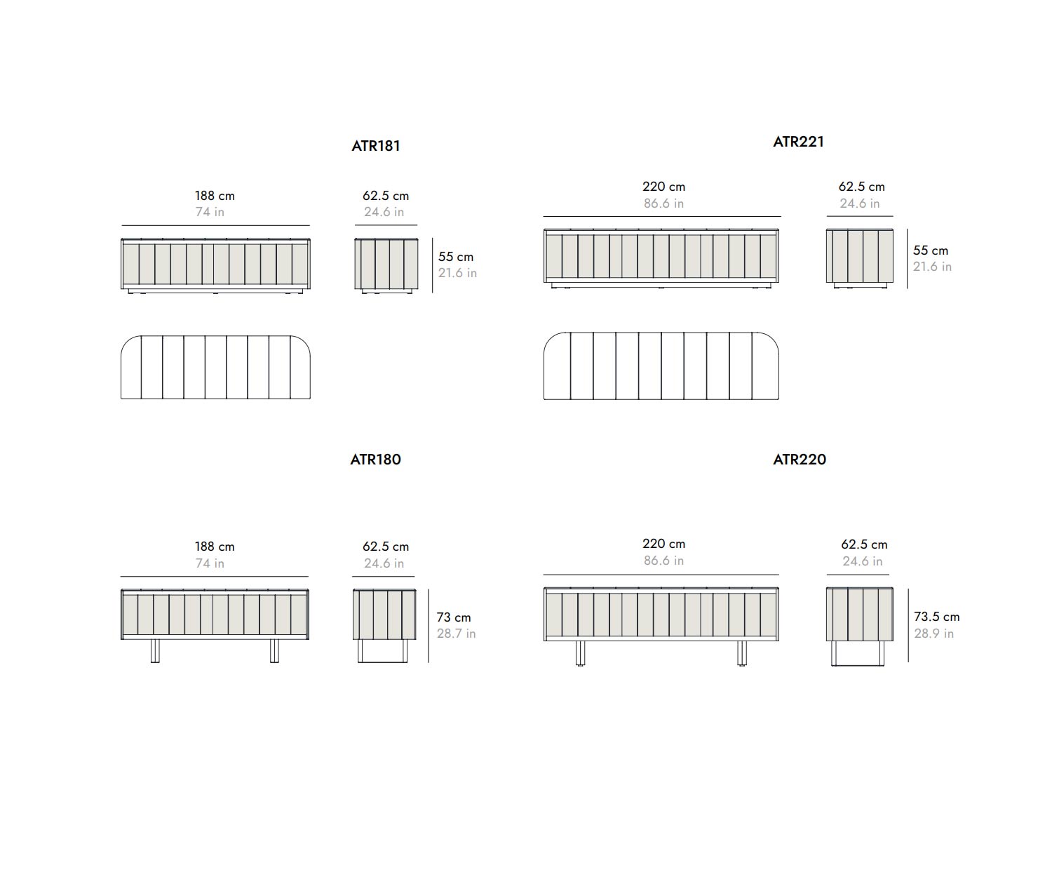 Le sideboard design Punt Atrio est disponible dans les dimensions suivantes. versions au choix :