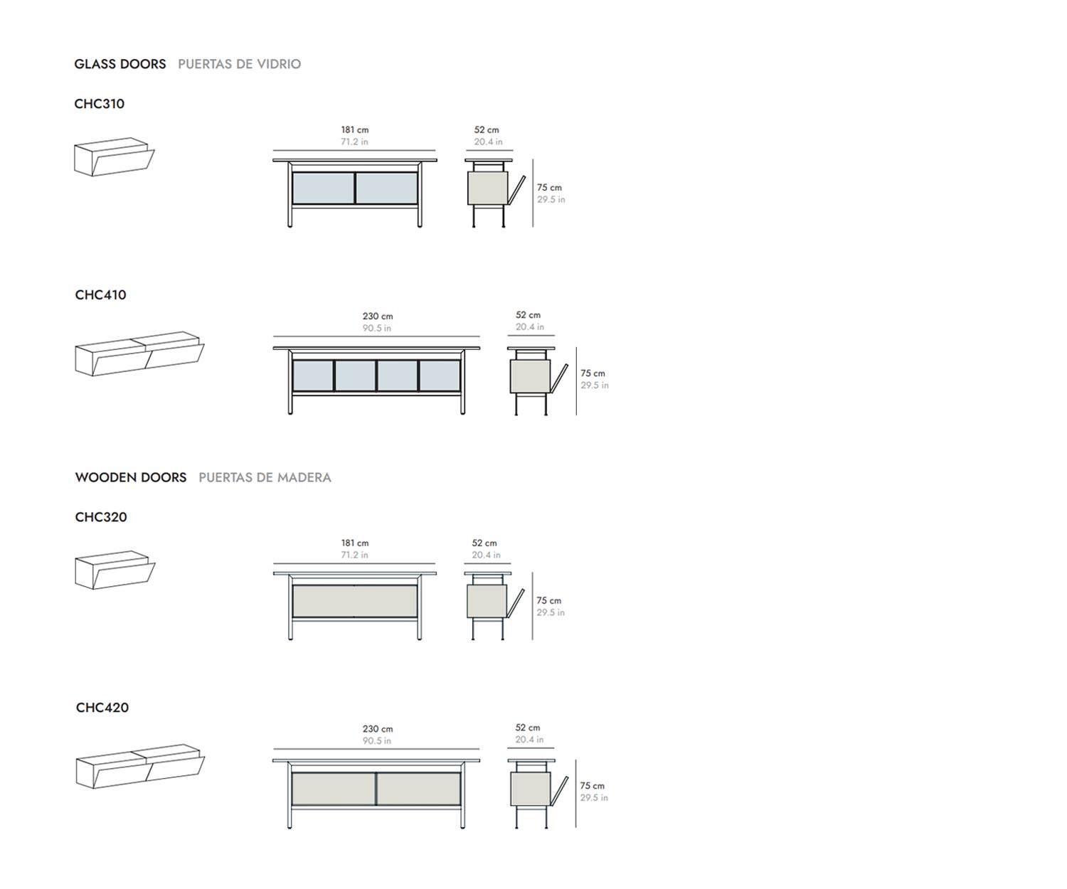 Le sideboard design Punt Chicago est disponible dans les dimensions suivantes versions au choix :