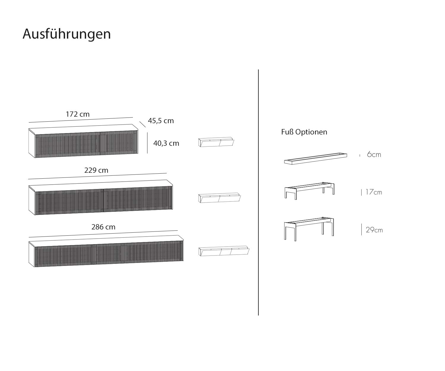 Ce TV Lowboard design Malmö de Punt est disponible dans les largeurs suivantes :