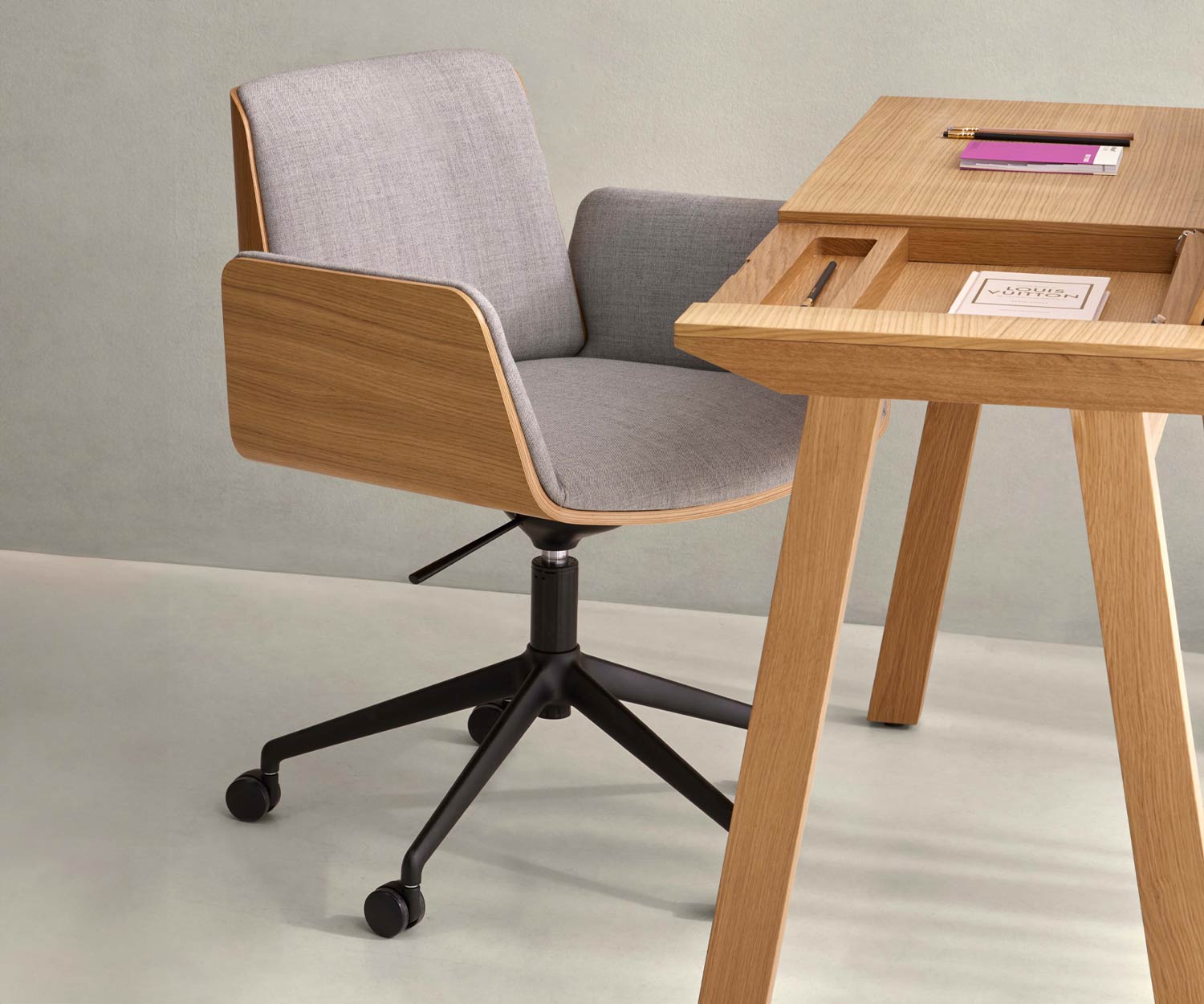 La structure du secrétaire design Ernest Punt est en bois massif. Au choix, chêne ou noyer. Le plateau et la tablette sont en panneau de particules plaqué bois véritable.