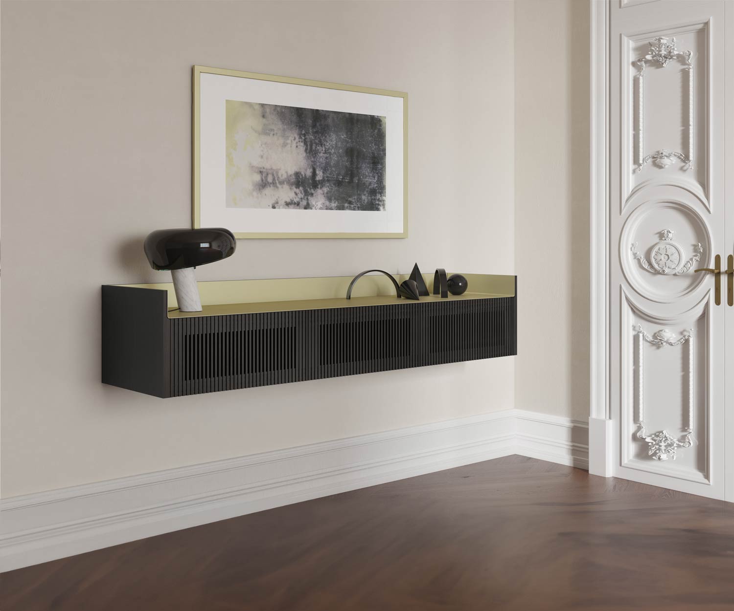 Le Stockholm Wand TV Lowboard est disponible pour un montage mural. Sur demande, le sideboard peut également être commandé avec un socle ou des pieds. Le Stockholm Sideboard convainc non seulement par son design exceptionnel, mais aussi par sa fonction :