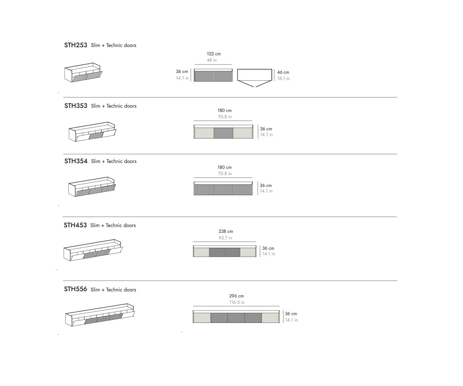 Le sideboard TV Punt Stockholm Slim est disponible en 4 largeurs :