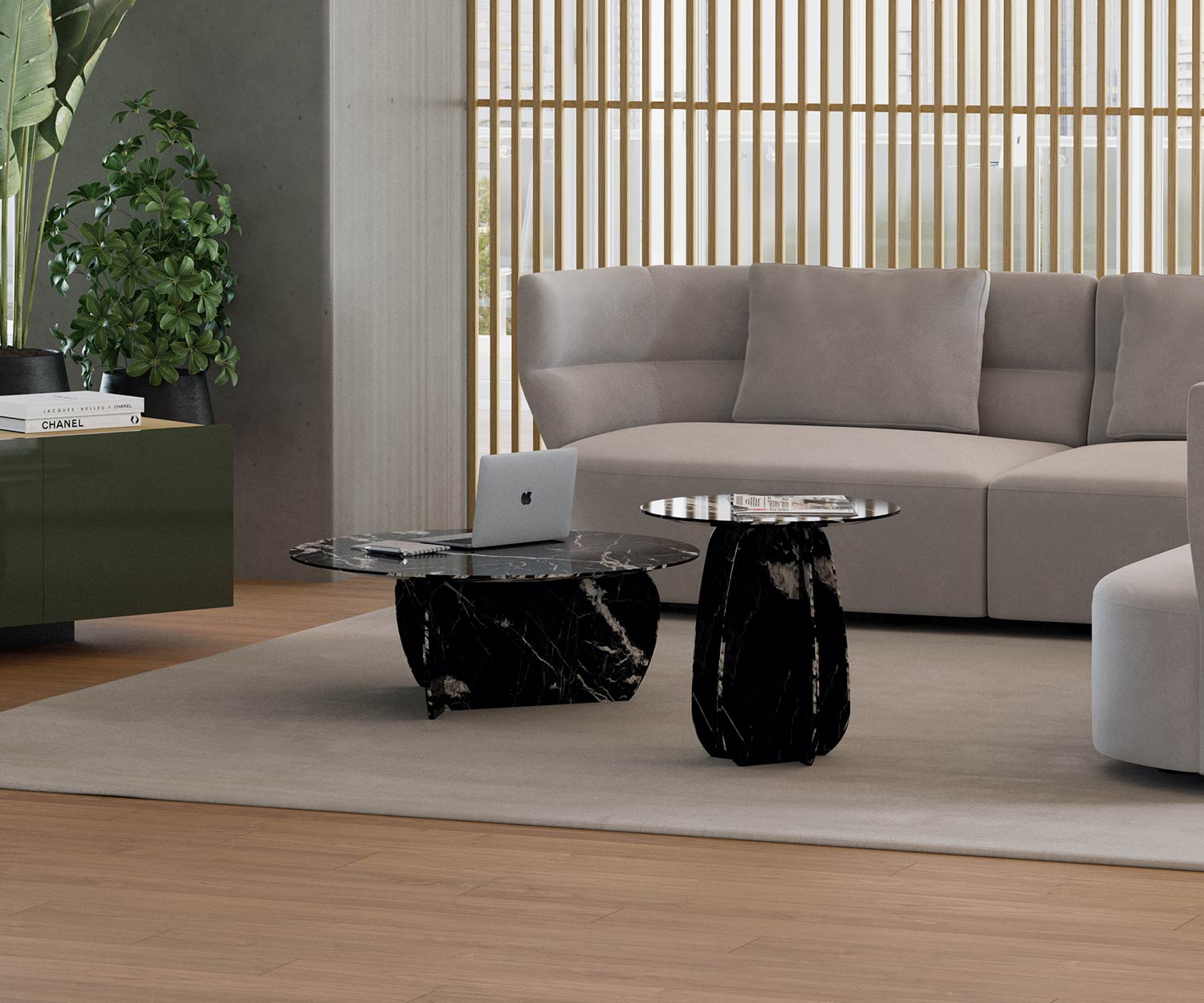 La table bassePunt Coral, conçue par Arik Levy, attire l'attention dans chaque pièce grâce à sa forme et à sa fonction exceptionnelles. Avec ses lignes abstraites mais élégantes et son marbre massif Marquina, la table basse design Coral apporte un éclat exclusif à votre salon.