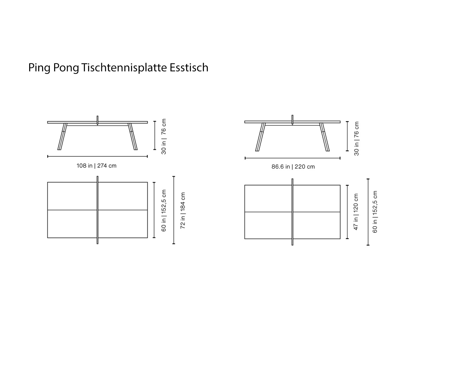 Grâce à sa hauteur confortable de 76 cm, la table de ping-pong peut également être utilisée à l'extérieur comme table de jardin. Le plus grand modèle permet d'accueillir 10 personnes sans problème.