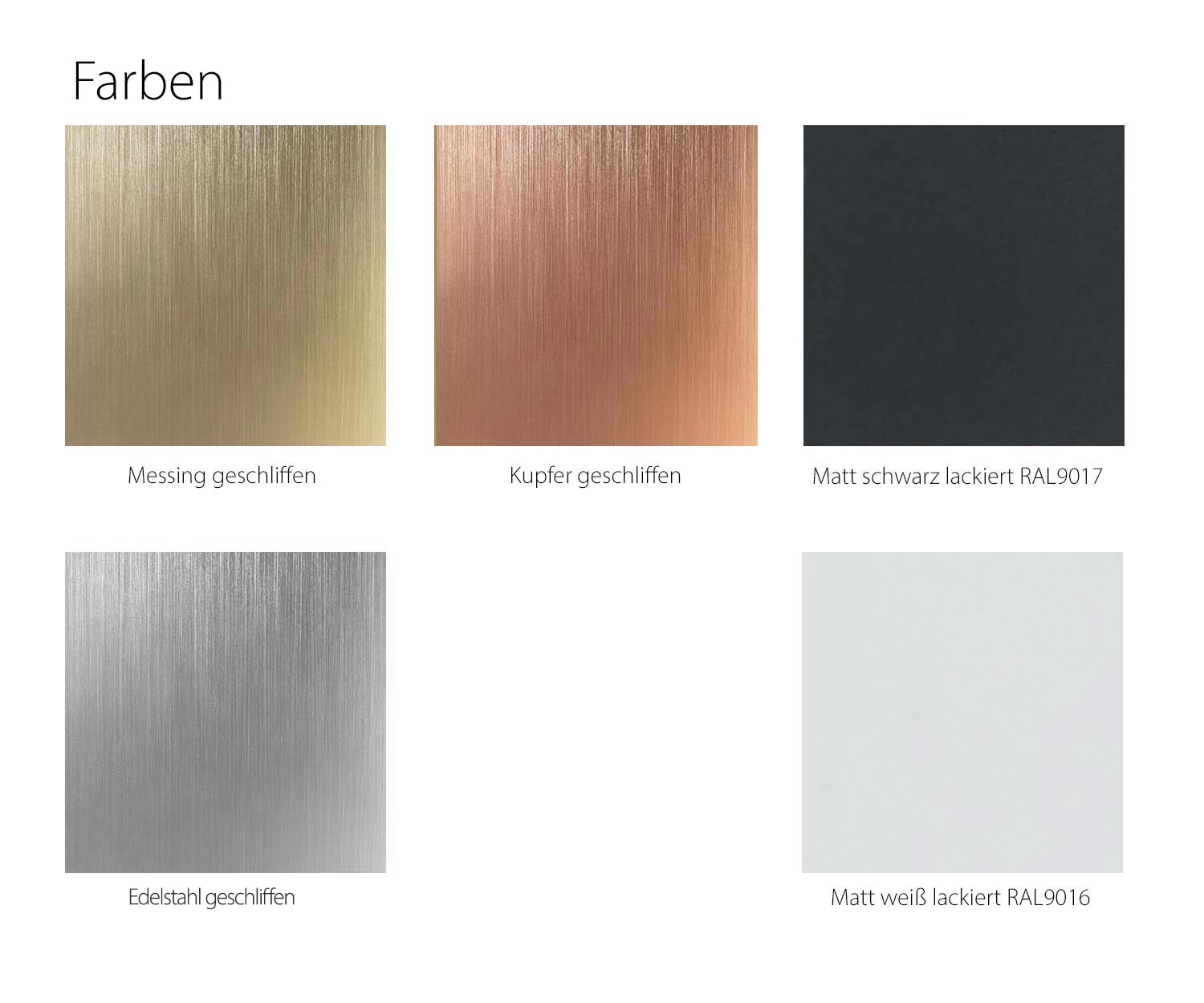 Le piètement et le plateau de la table d'appoint standard M5 sont disponibles en noir mat RAL 9017 et en blanc mat RAL 9016. Le modèle Splus M5 Edition a une structure en noir gris fer micacé (comme illustré) Les coques des modèles M5 Editions (attention uniquement pour le modèle rond) sont disponibles en cuivre ou laiton poli, ainsi qu'en aluminium anodisé argenté