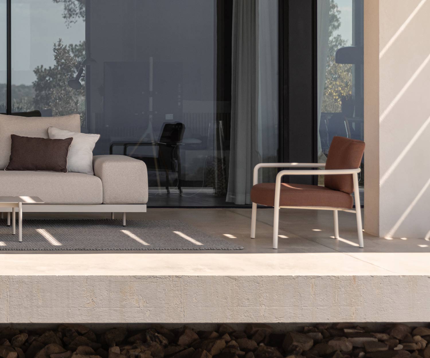Les coussins d'assise et de dossier sont en mousse à séchage rapide et sont recouverts d'une housse "Crevin Vita" amovible et facile d'entretien, Chaque détail a été pensé pour allier harmonieusement confort et design.
