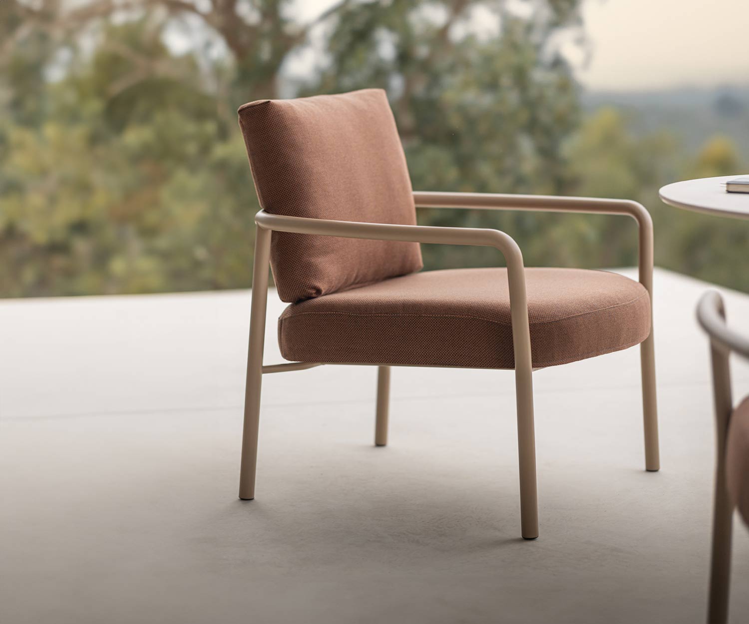 Pour un ensemble harmonieux, le fauteuil lounge Kori se combine parfaitement avec d'autres pièces de la collection Kori : la table de salle à manger classique et élégante Kori, la table d'extérieur expressive Kori Flex ou la confortable chaise de jardin Kori - idéale pour les moments de détente en plein air.